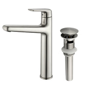 1-Hole Vessel Bathroom Faucet Brass Single Lever Basin Mixer Faucet with Stainles Steel Pop Up Sink Drain