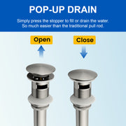 Single Handle Bathroom Sink Faucet Deck Mount One Hole Vanity Faucet with Pop-Up Drain - Matte Black, Chrome, Brushed Nickel, Brushed Gold