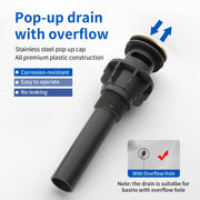 Single Handle High Basin Faucet SS304 Hot Cold Water Mixer Bathroom Vessel Sink Faucet with Pop-Up Waste