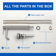 Single Hole Vessel Bathroom Faucet1.2GPM Round Hot Cold Tall Basin Mixer with SUS 304 Drain Assembly -Matt Black, Chrome, Brushed Nicke, Brushed Gold
