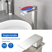 Vessel Sink Faucet Tall Single Control Waterfall Single Hole Deck Mount Bathroom Faucet With Pop-Up Faucet Stopper - Matte Black, Brushed Nickel, Brushed Gold