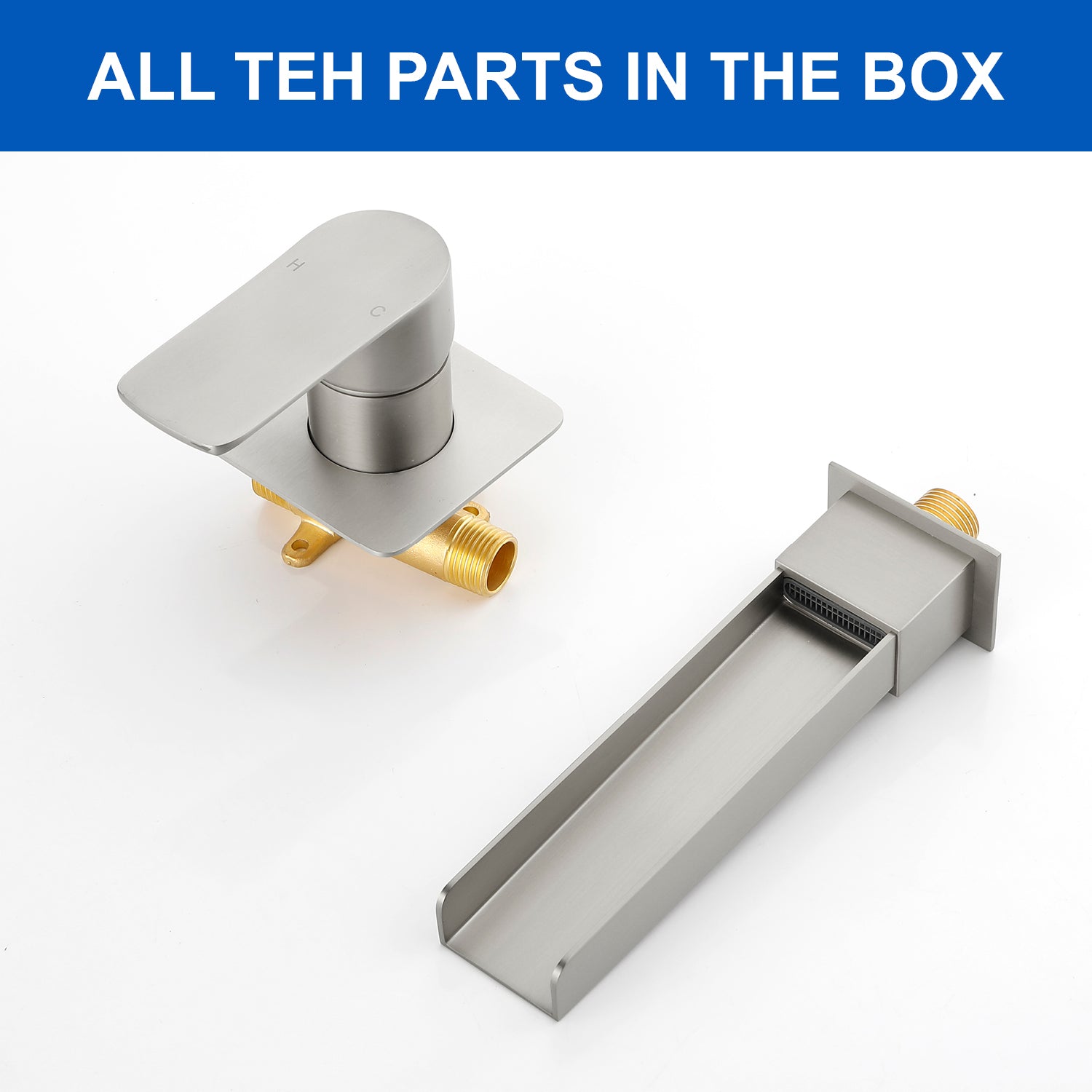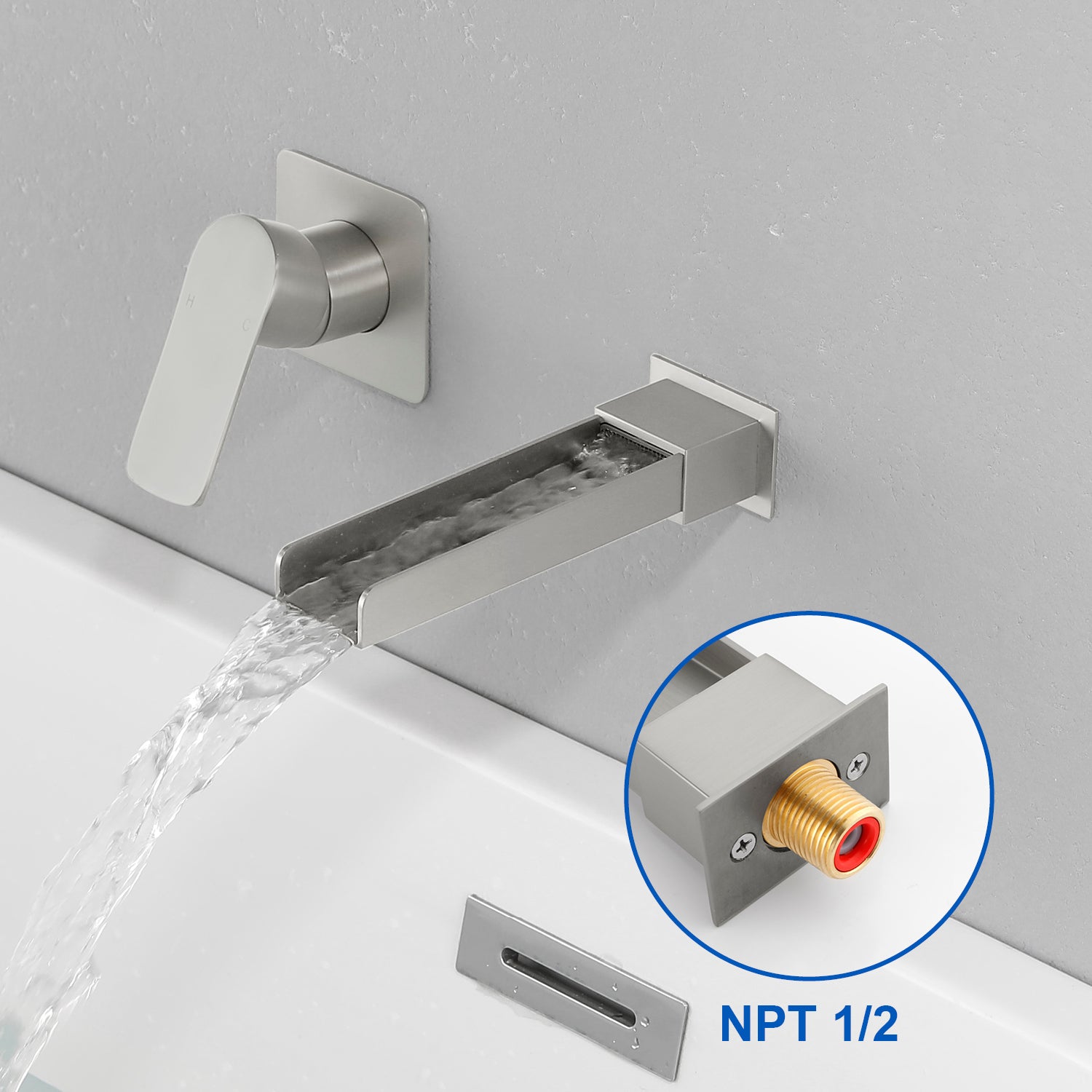 Wall mount bathroom Faucet This waterfall faucet is suitable for bathtub, bathroom sink, lavatory basin, vanity vessel sink and rv.US standard NPT 1/2'' connector makes it easy to install. Wall mount waterfall faucet Long reach brass waterfall spout and high flow rate fills up your bathtub in short time. The...