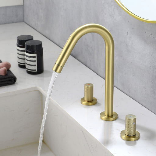 View full detailsSHAMANDA 2 Handle Bathroom Faucets for Sink 3 Hole, High-Arch Swivel Spout Deck Mounted 8 Inch Widespread Basin Faucet
