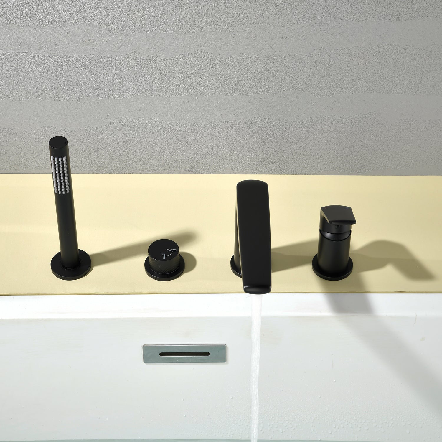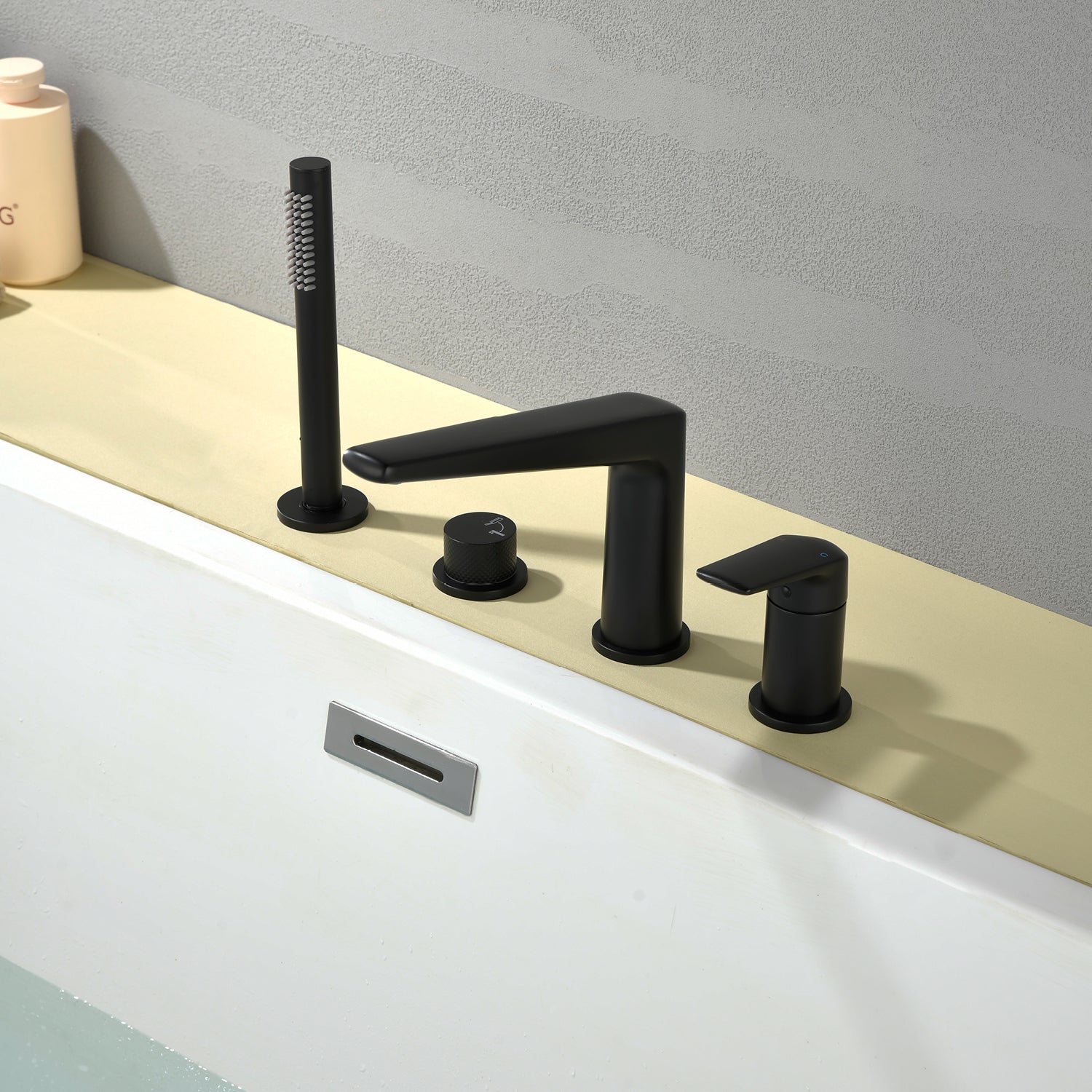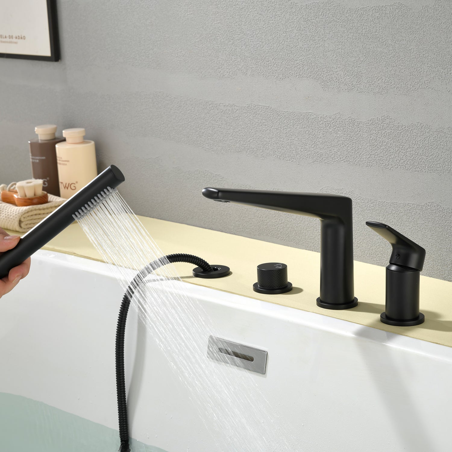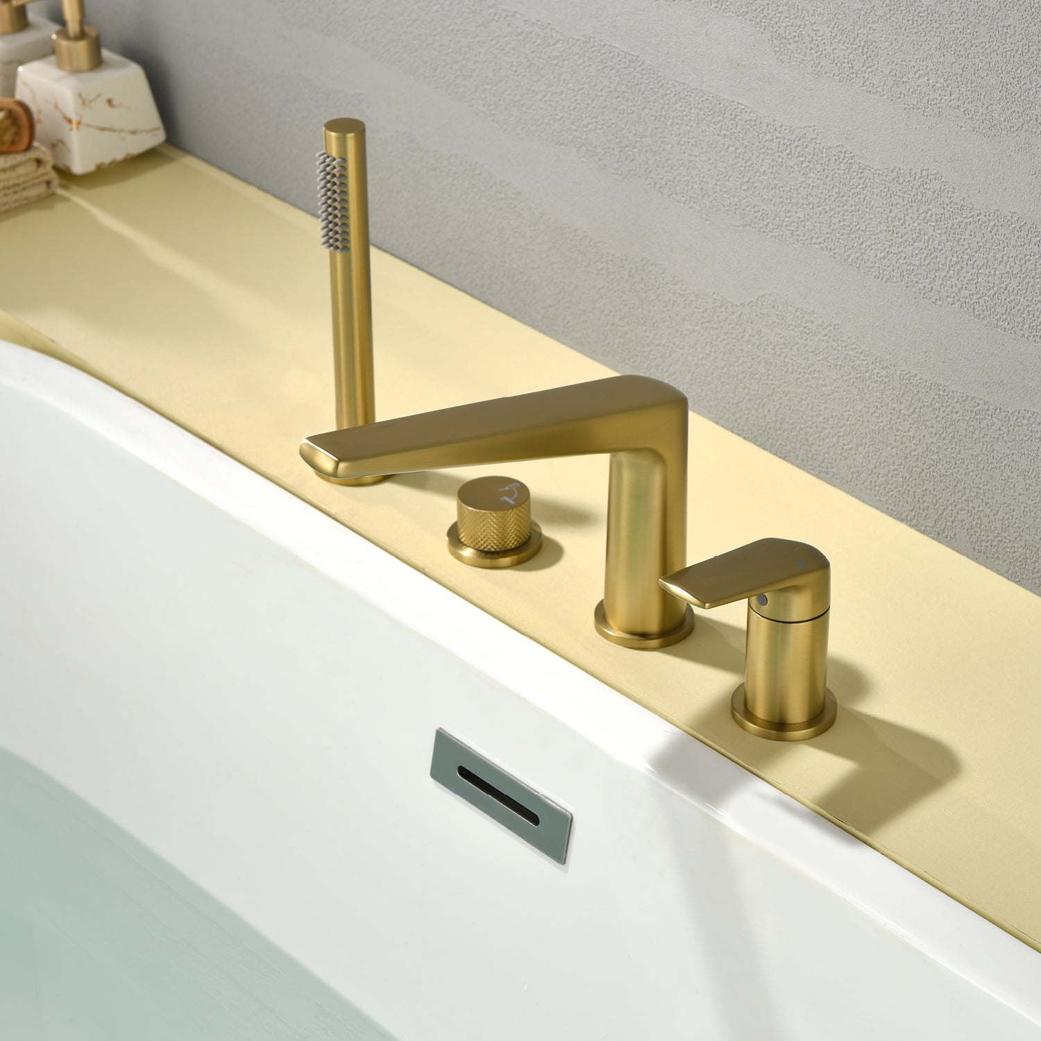 Brass Roman Tub Faucet 4 Piece Deck Mounted Bath Tap with Handshower - Brushed Gold, Brushed Nickel, Matte Black, Chrome