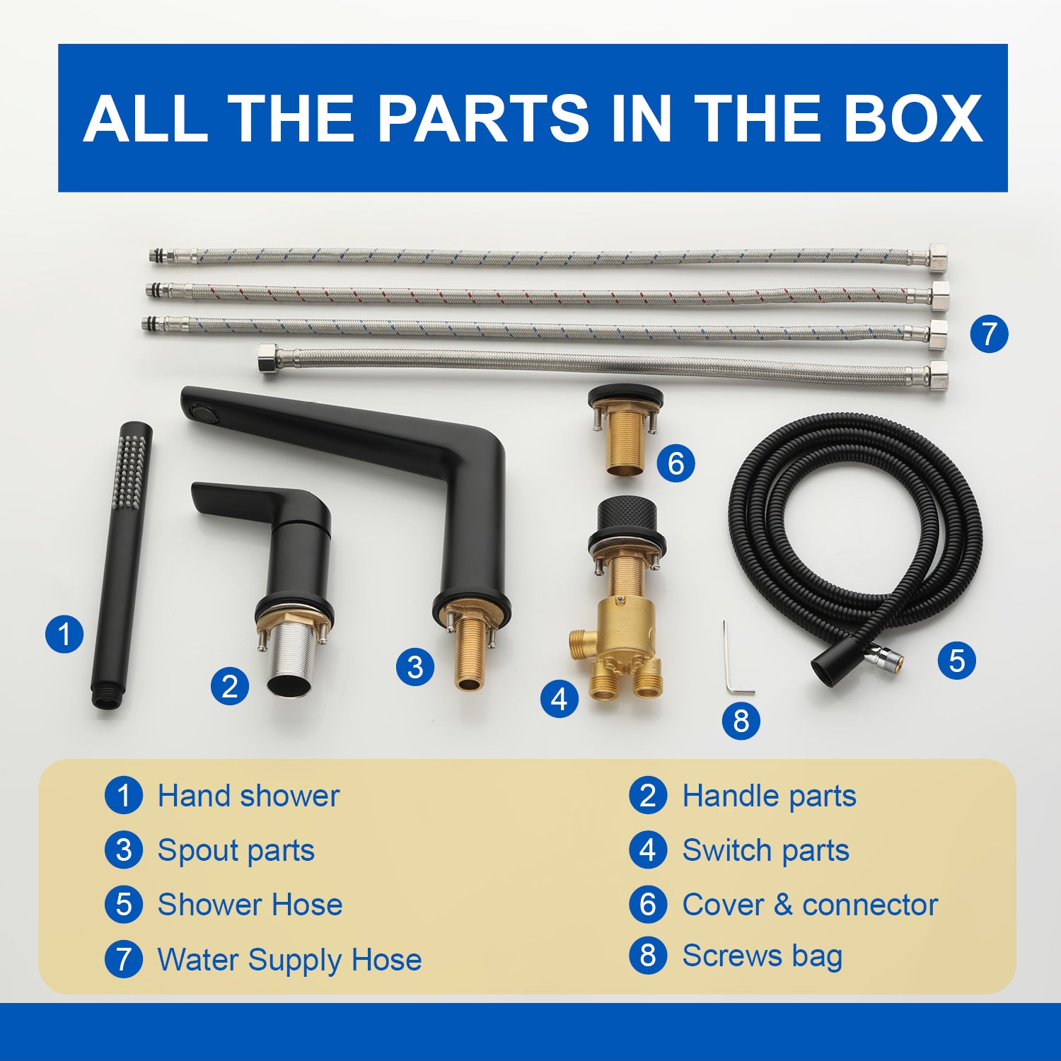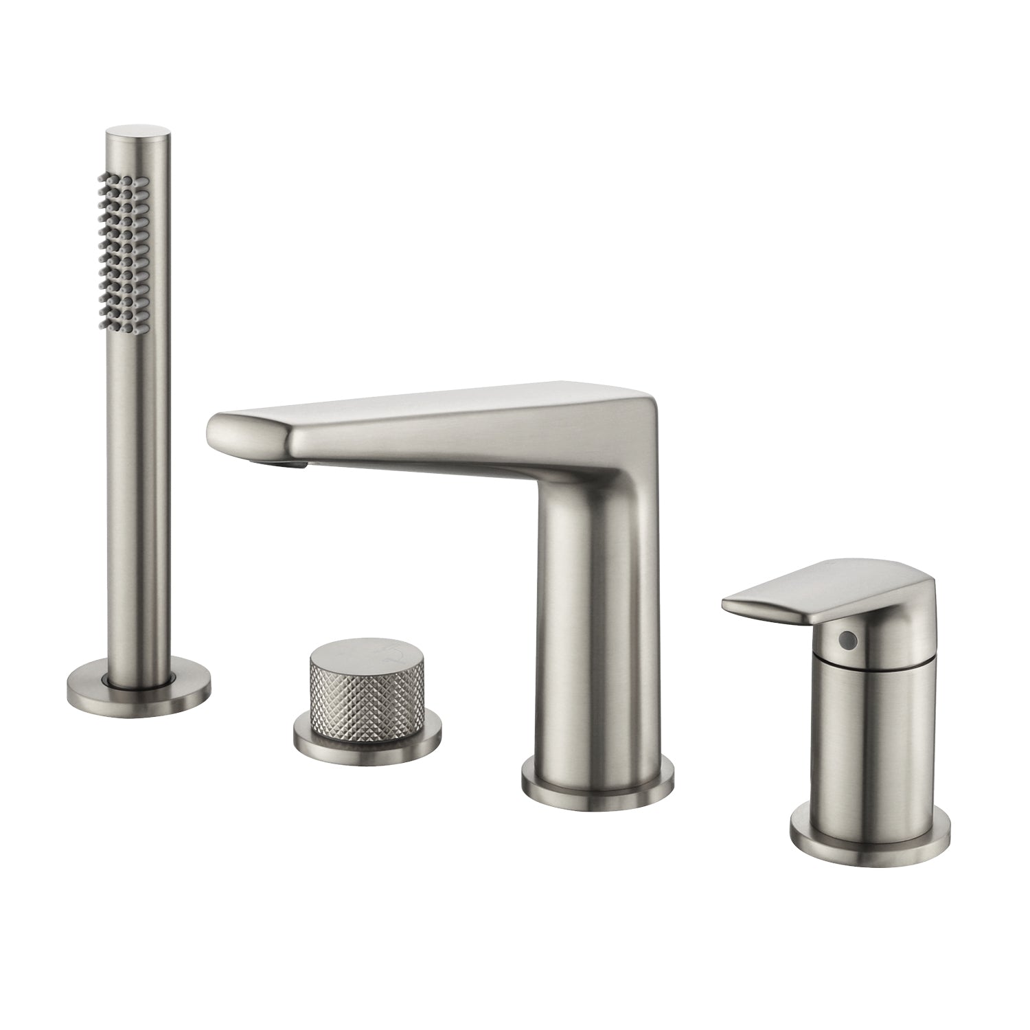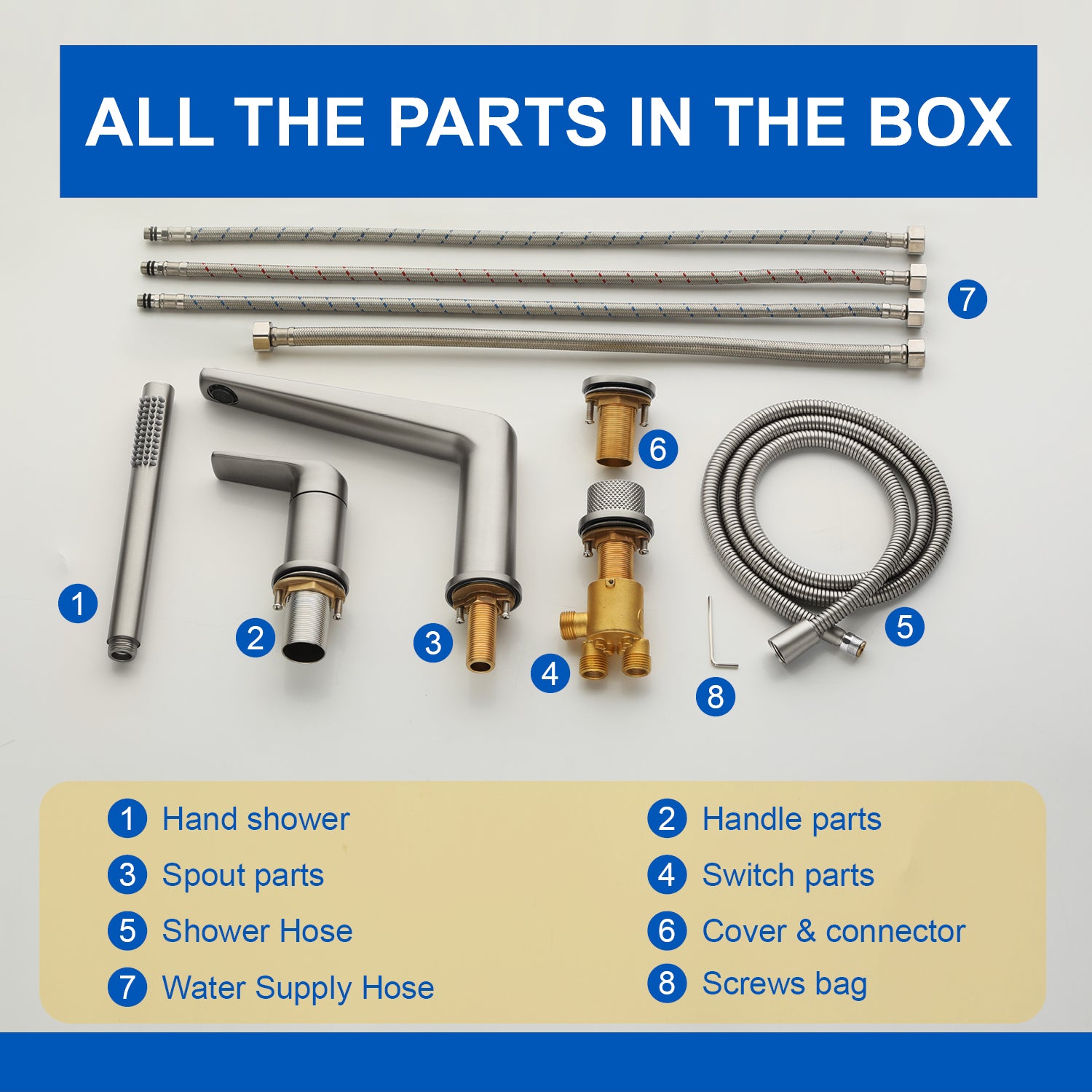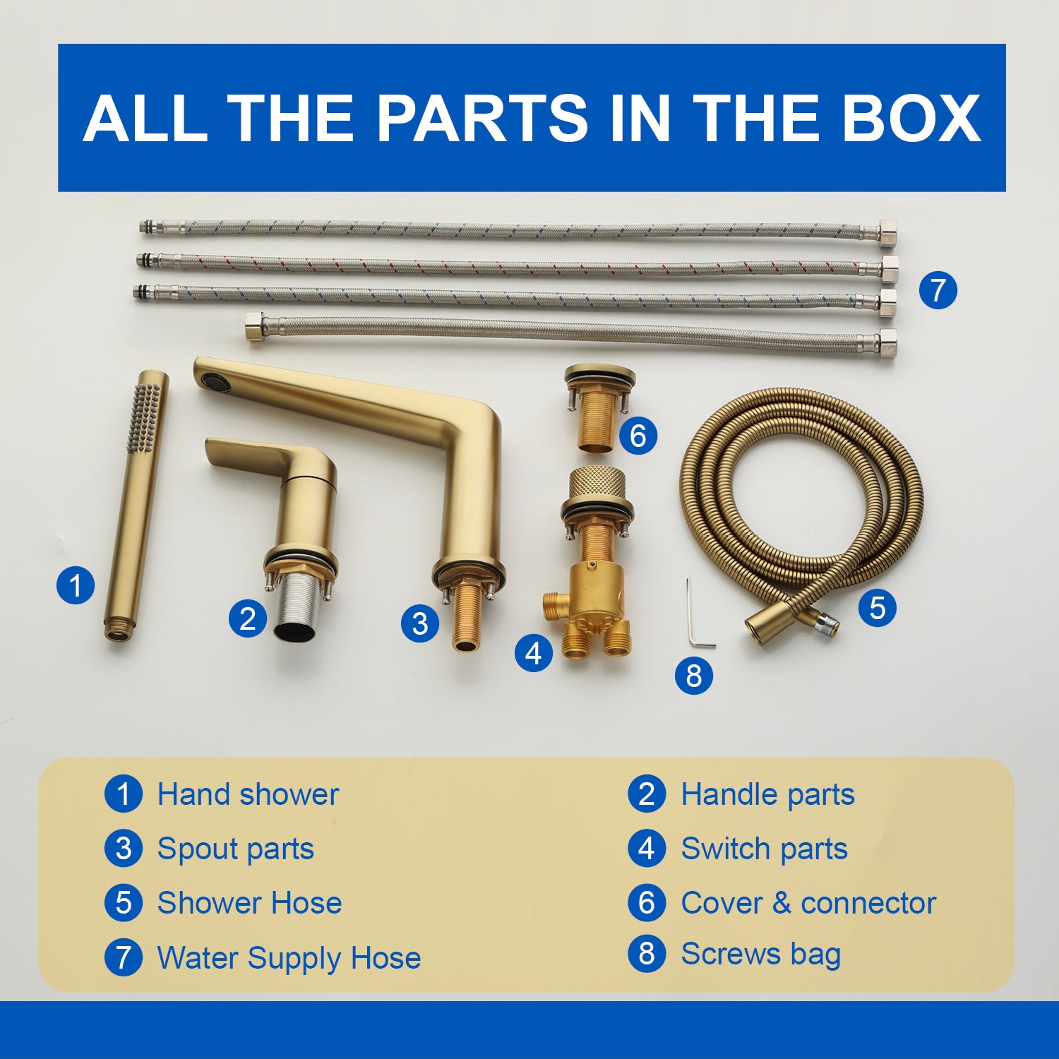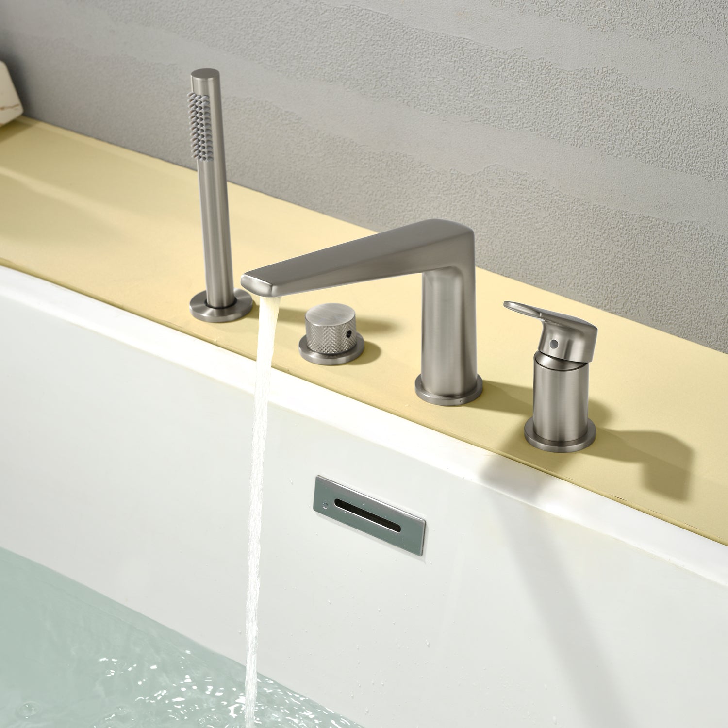 Brass Roman Tub Faucet 4 Piece Deck Mounted Bath Tap with Handshower - Brushed Gold, Brushed Nickel, Matte Black, Chrome