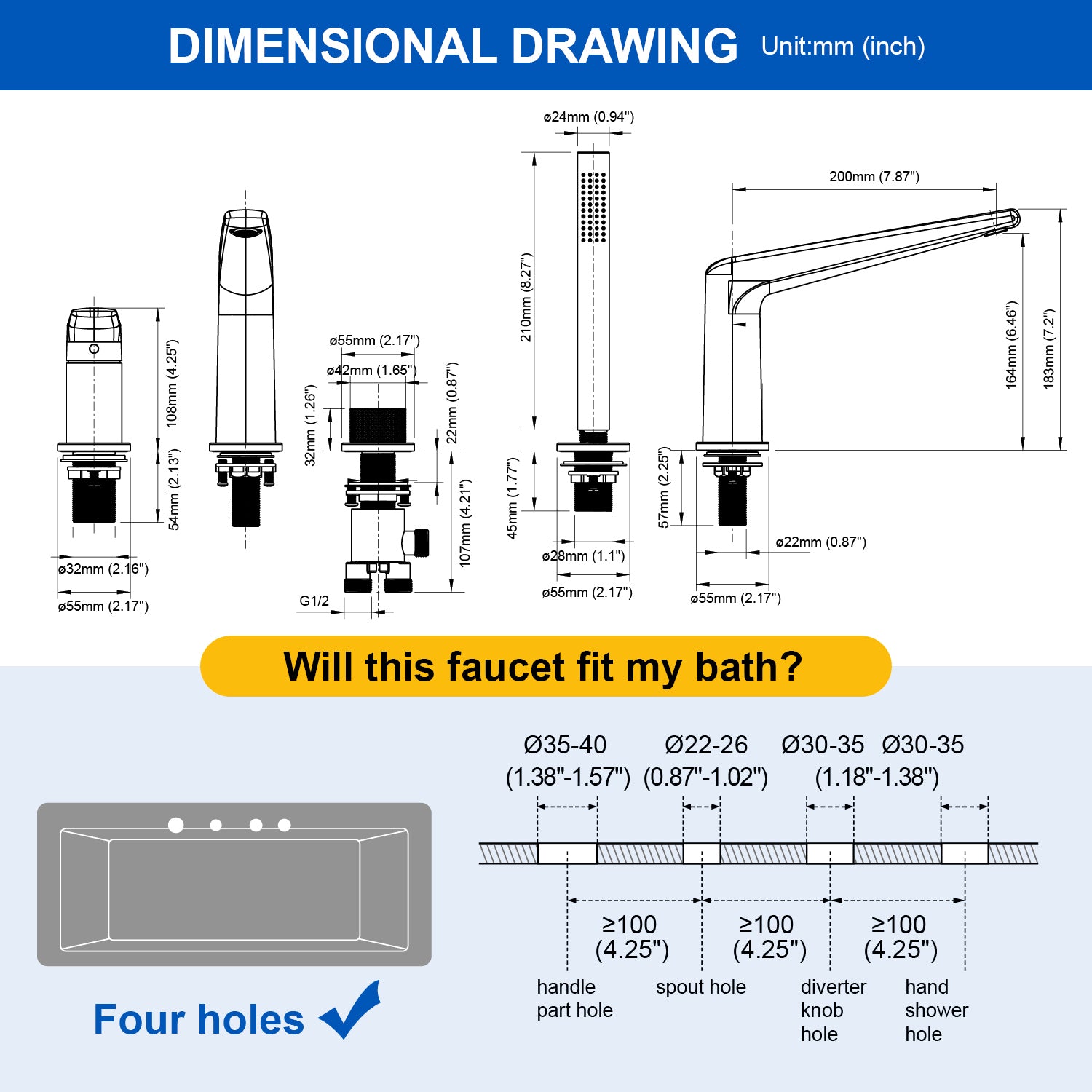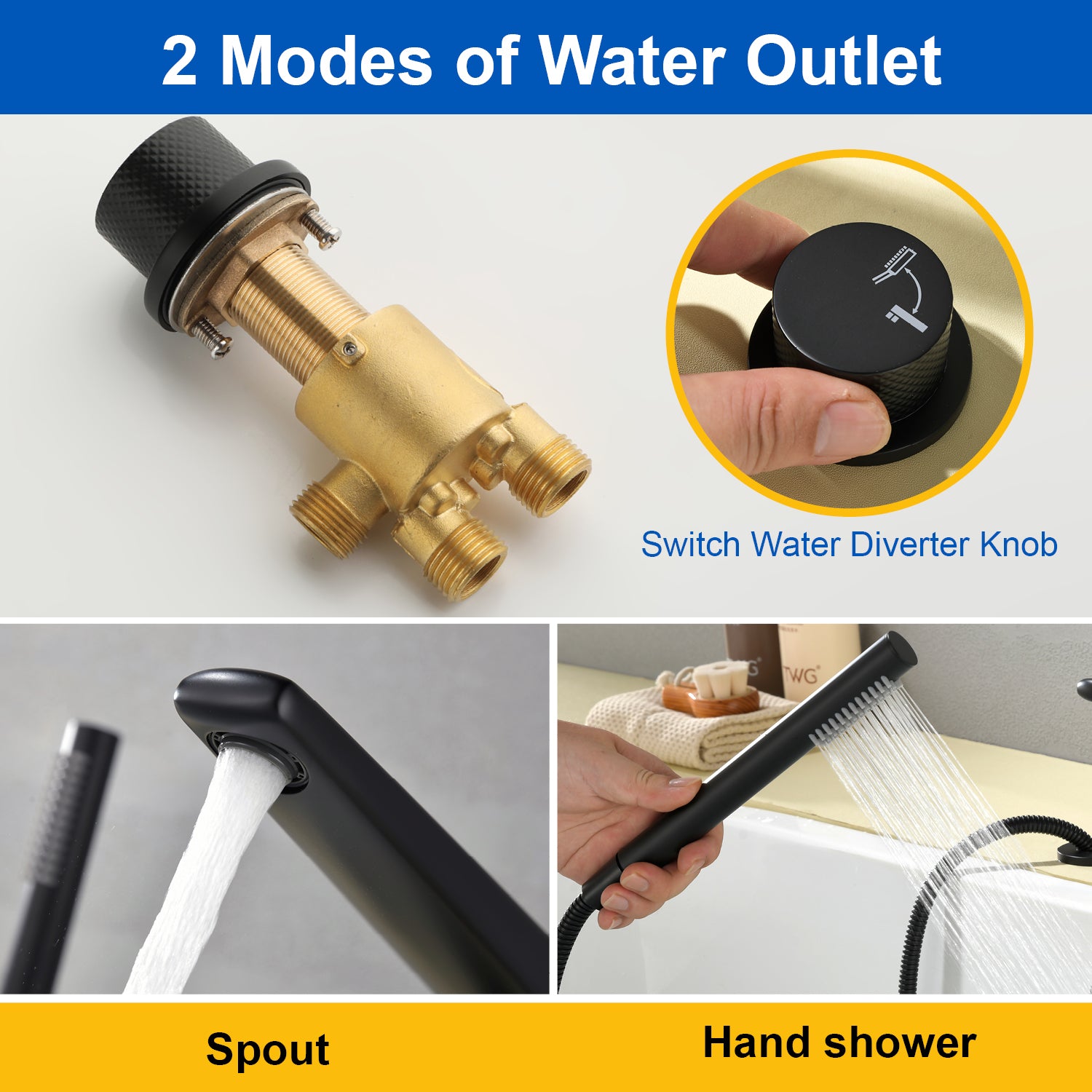 - Single handle easy to control hot water and cold water which is the best choice for bathtub. You Just simply rotate the lovely square knob to switch water to hand shower or waterfall spout.