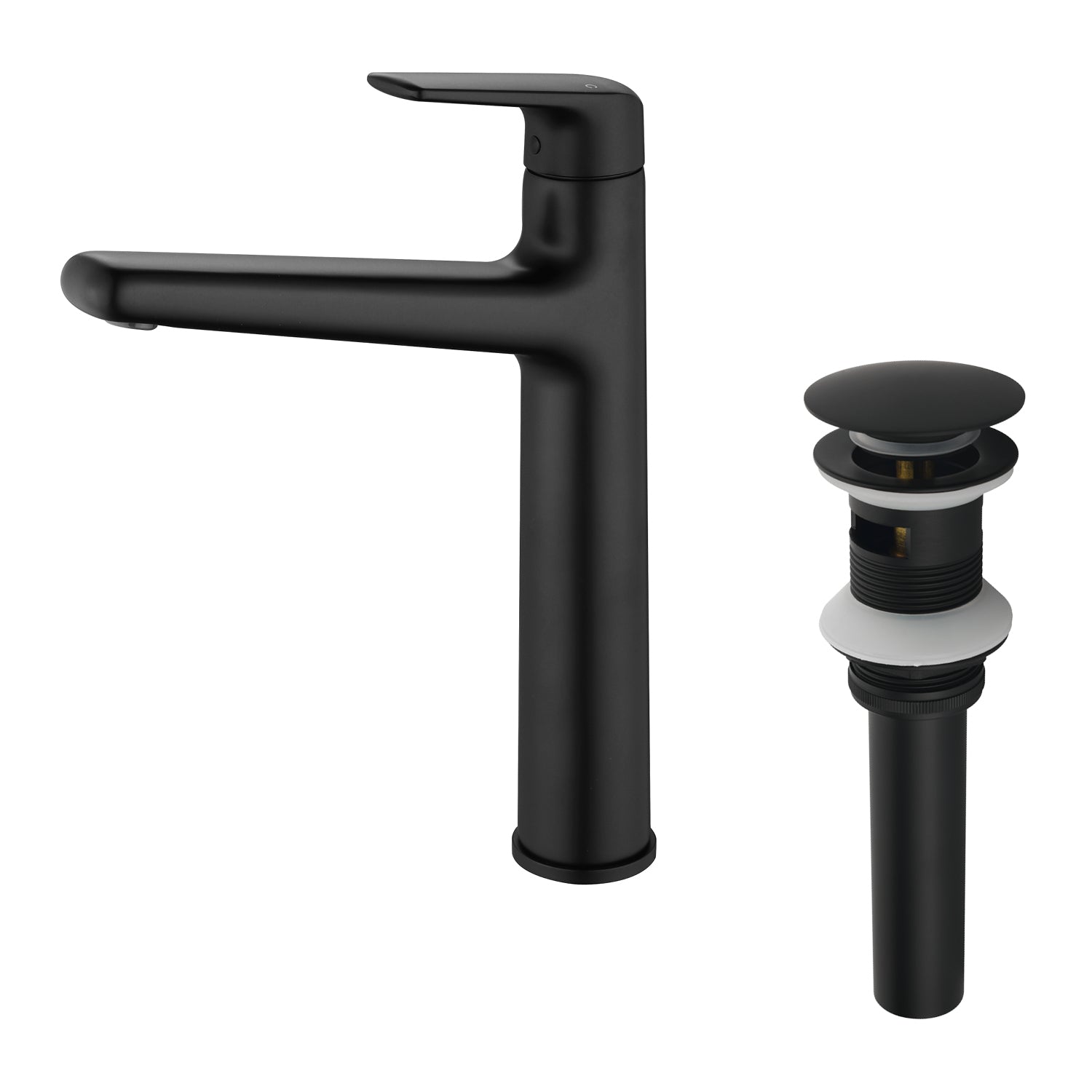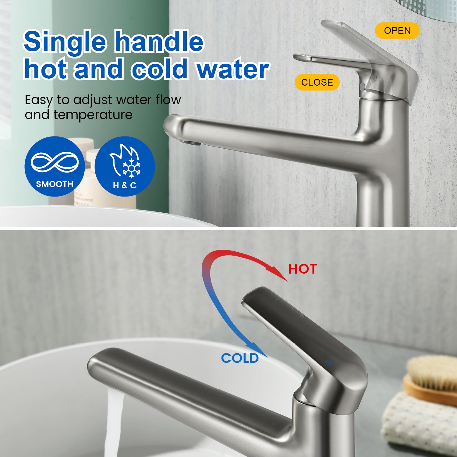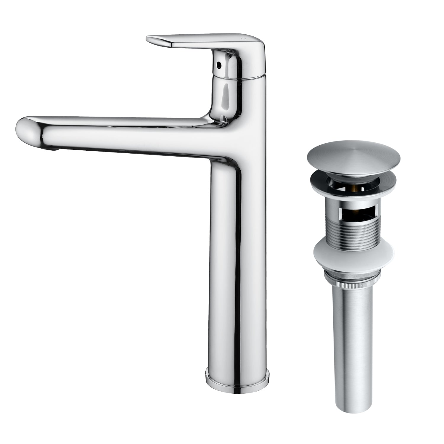 1-Hole Vessel Bathroom Faucet Brass Single Lever Basin Mixer Faucet with Stainles Steel Pop Up Sink Drain