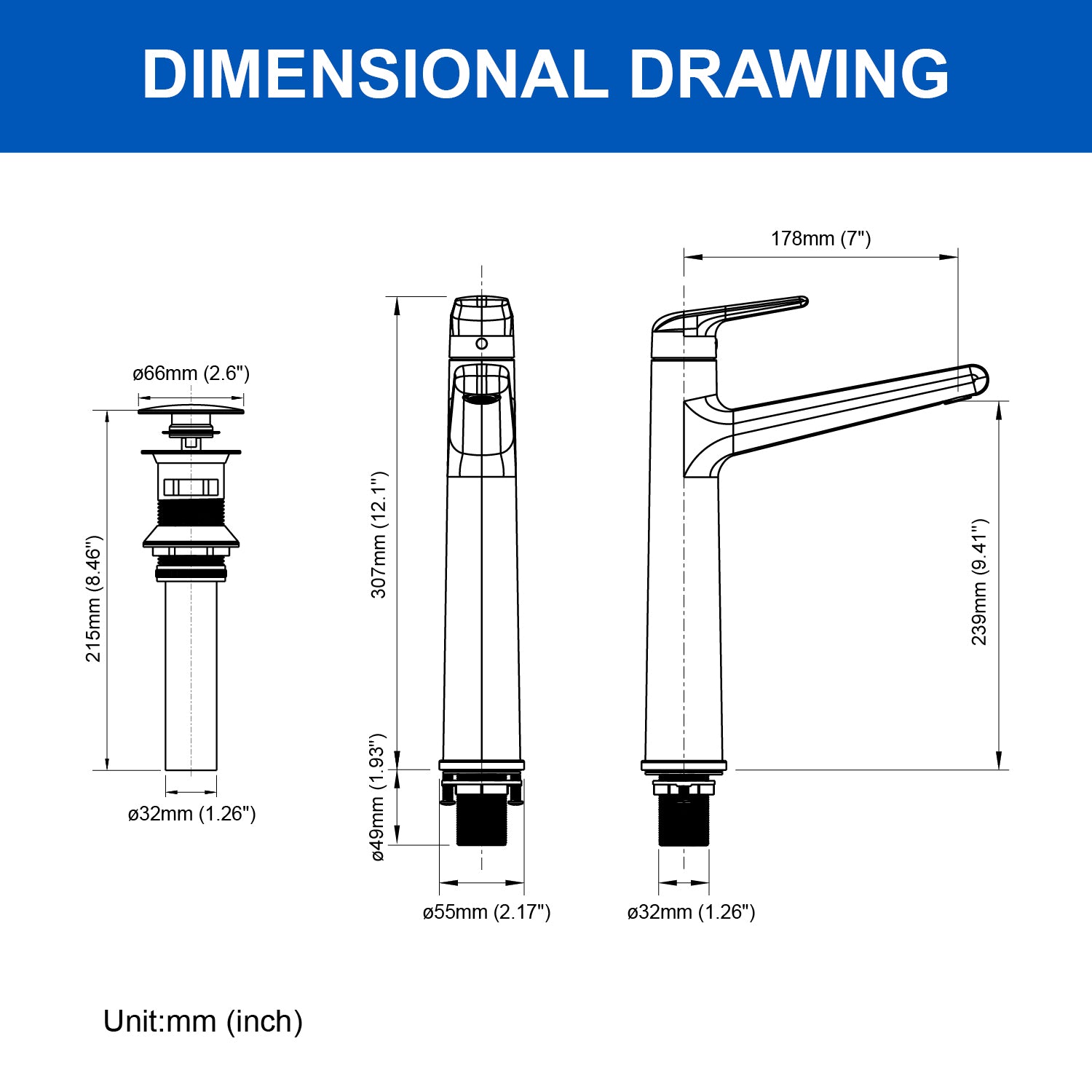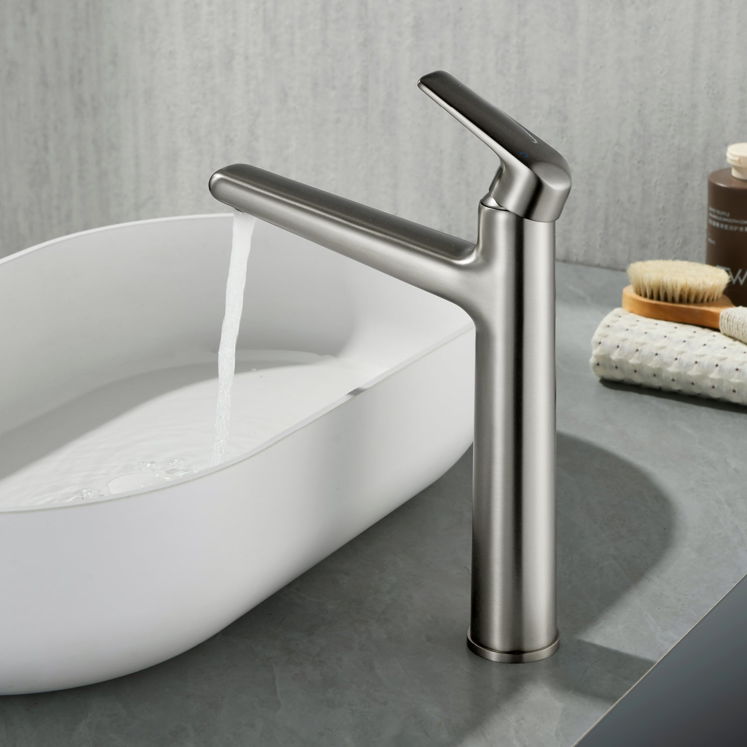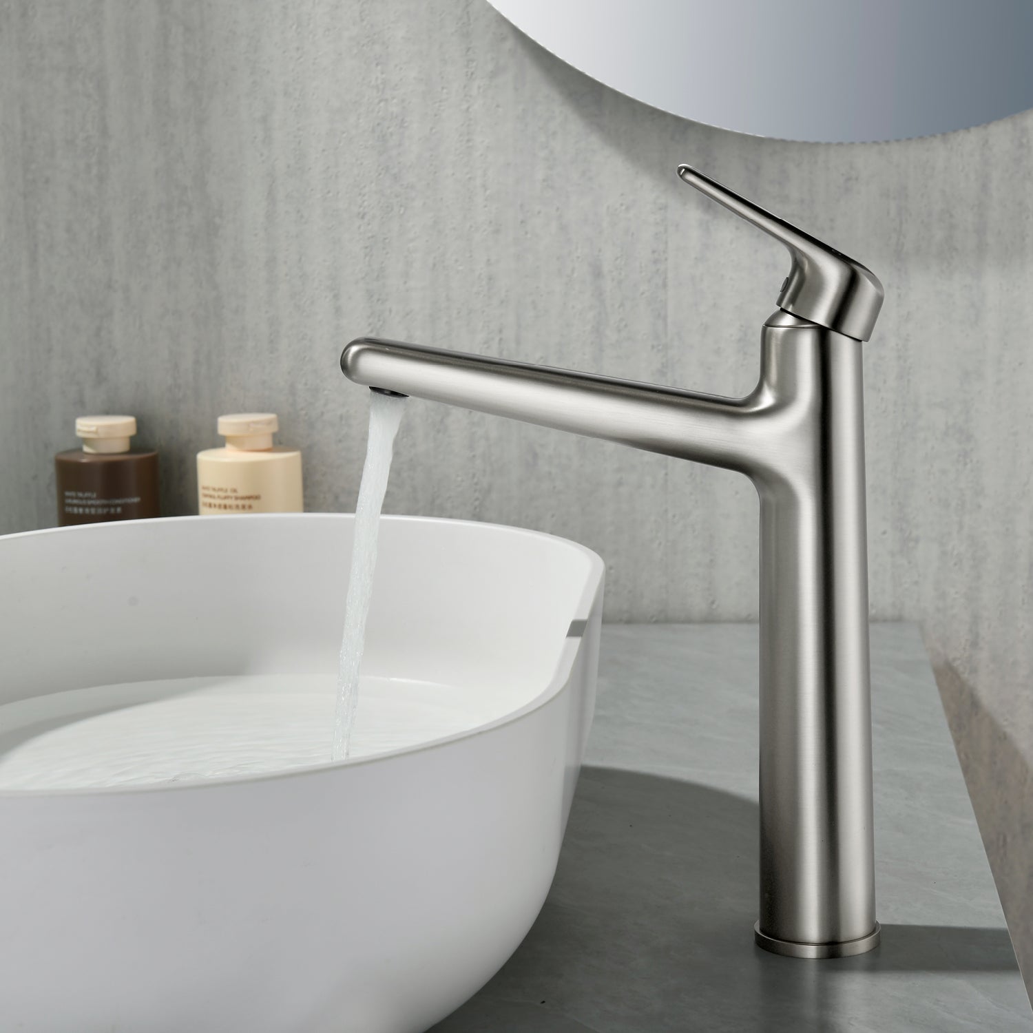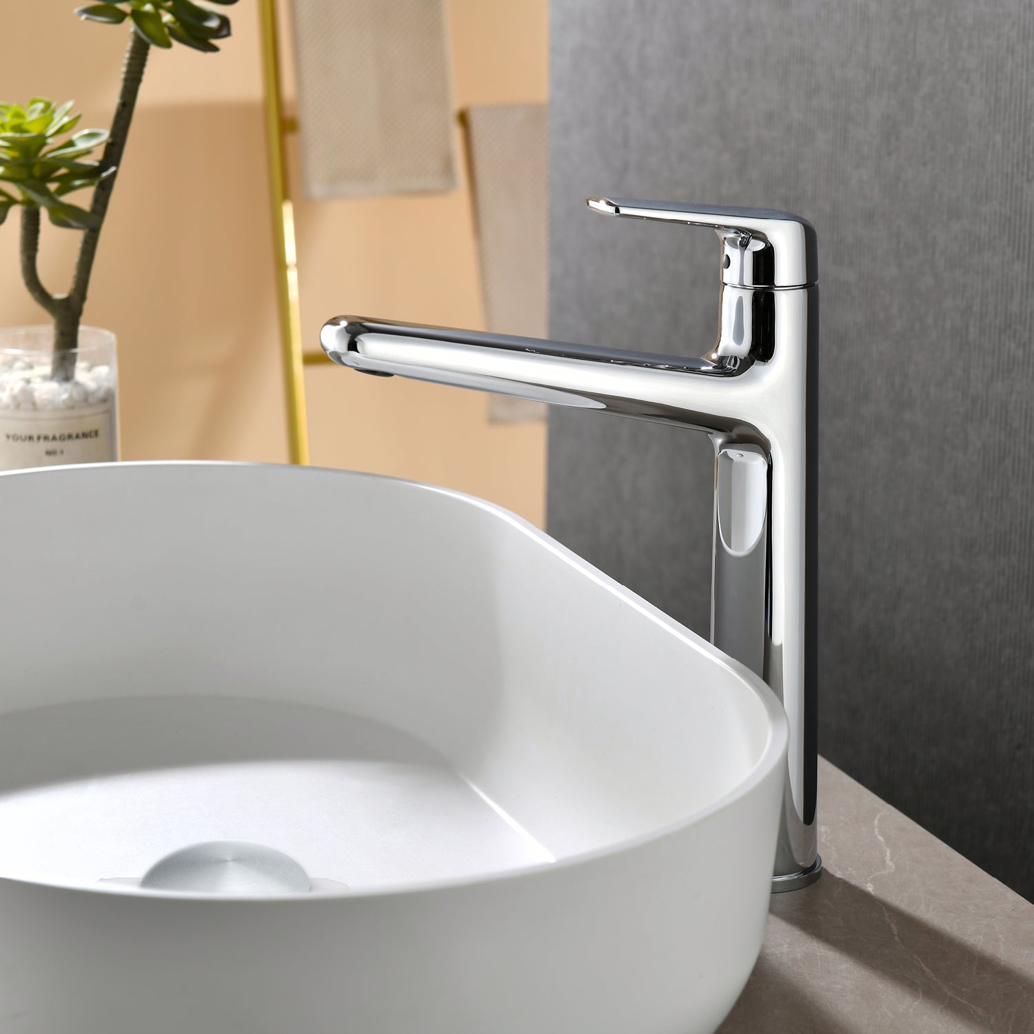 1-Hole Vessel Bathroom Faucet Brass Single Lever Basin Mixer Faucet with Stainles Steel Pop Up Sink Drain