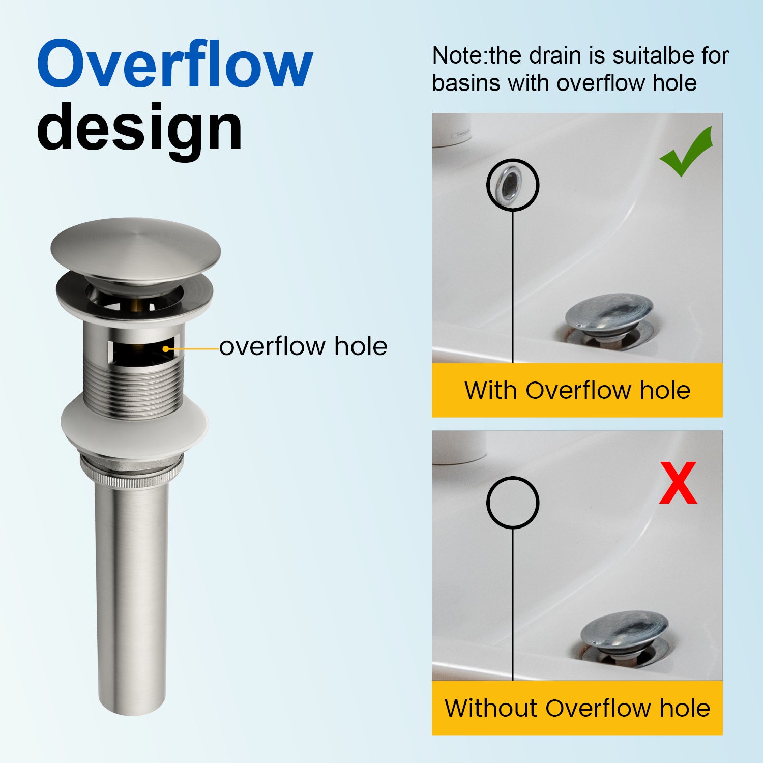 [TIP: The equipped pop-up drain is only suitable for bathroom sinks with overflow.]