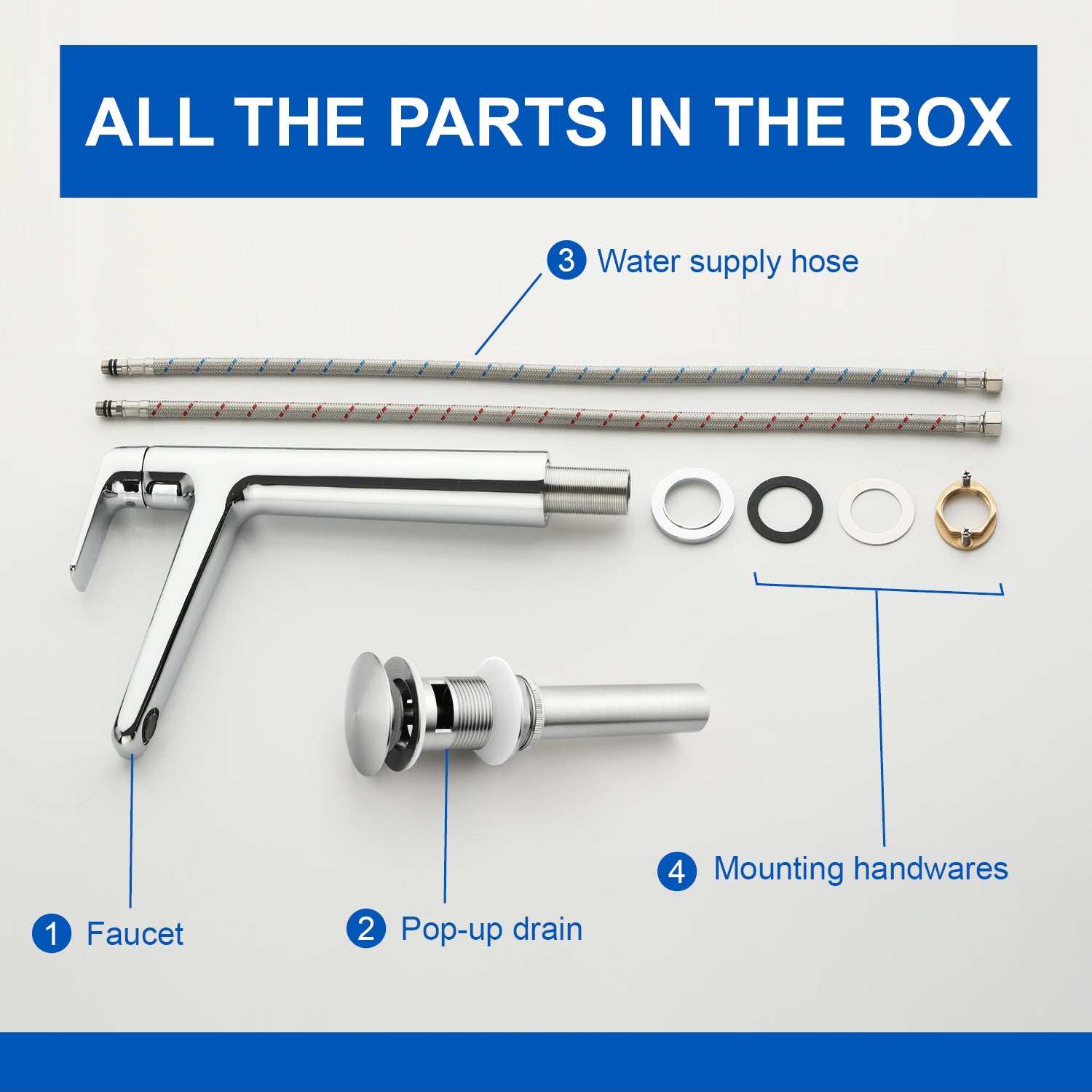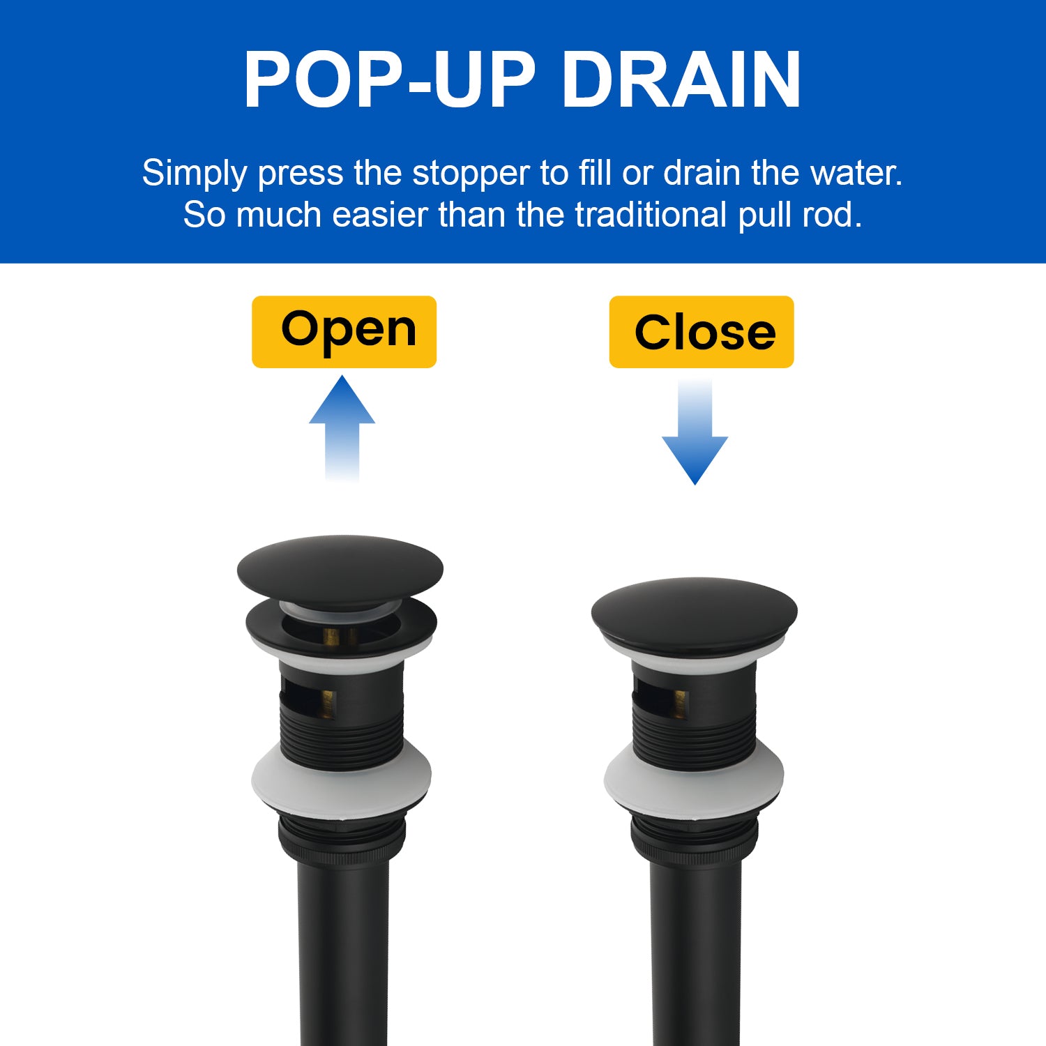 - The bathroom faucet is accompanied by a pop-up drain, which is simpler and more convenient to use, and easier to seal and release the drain.