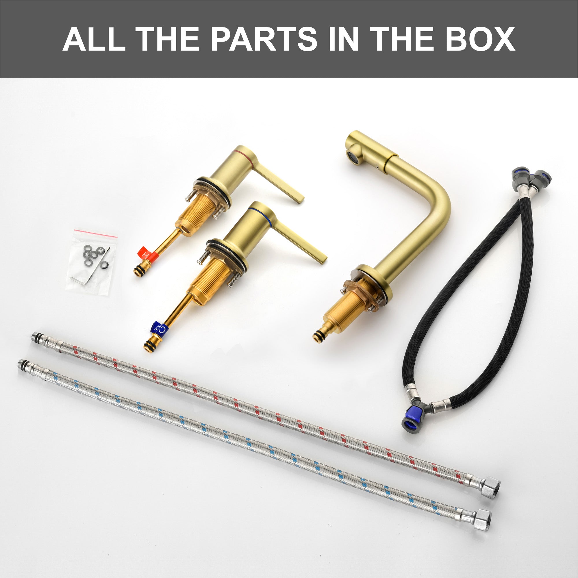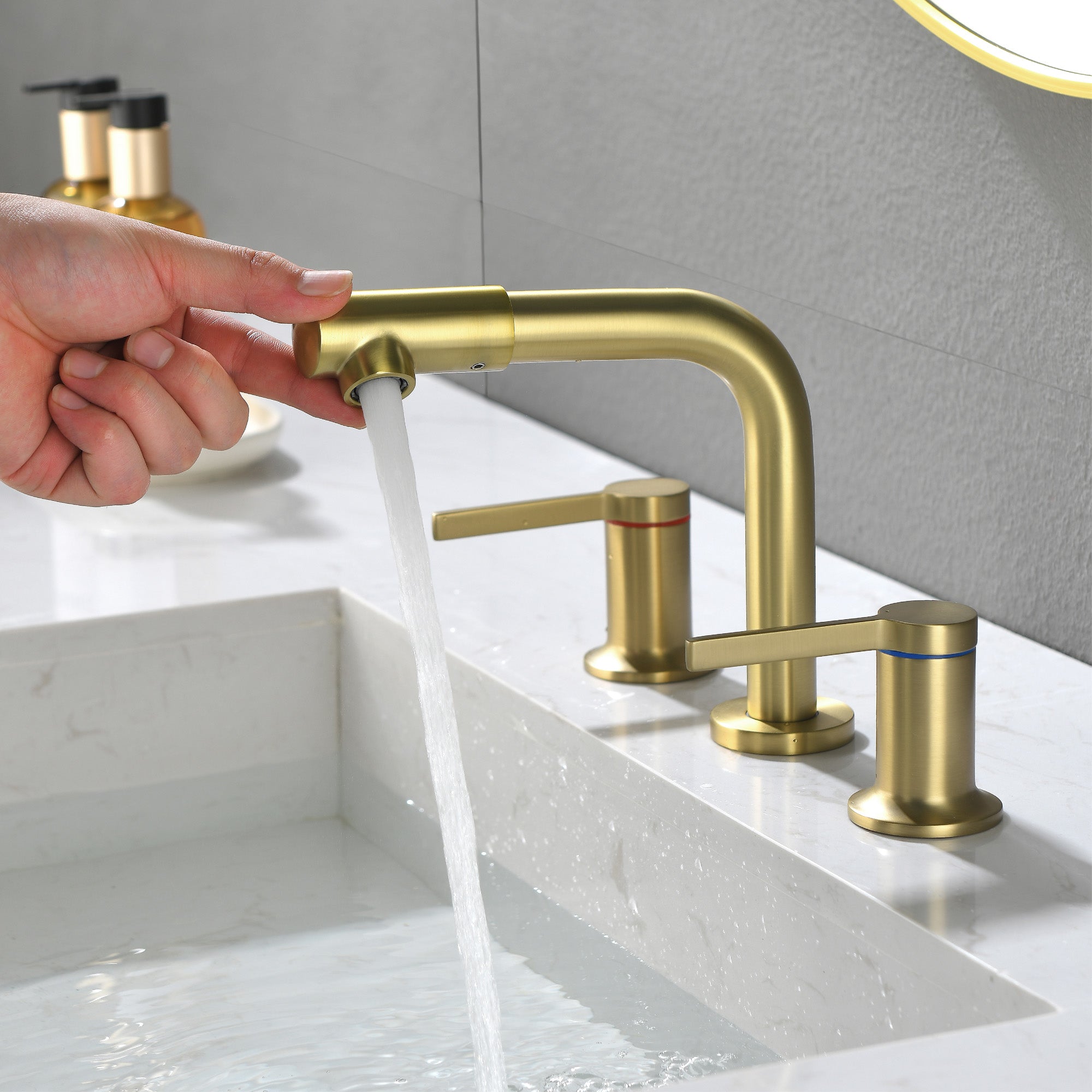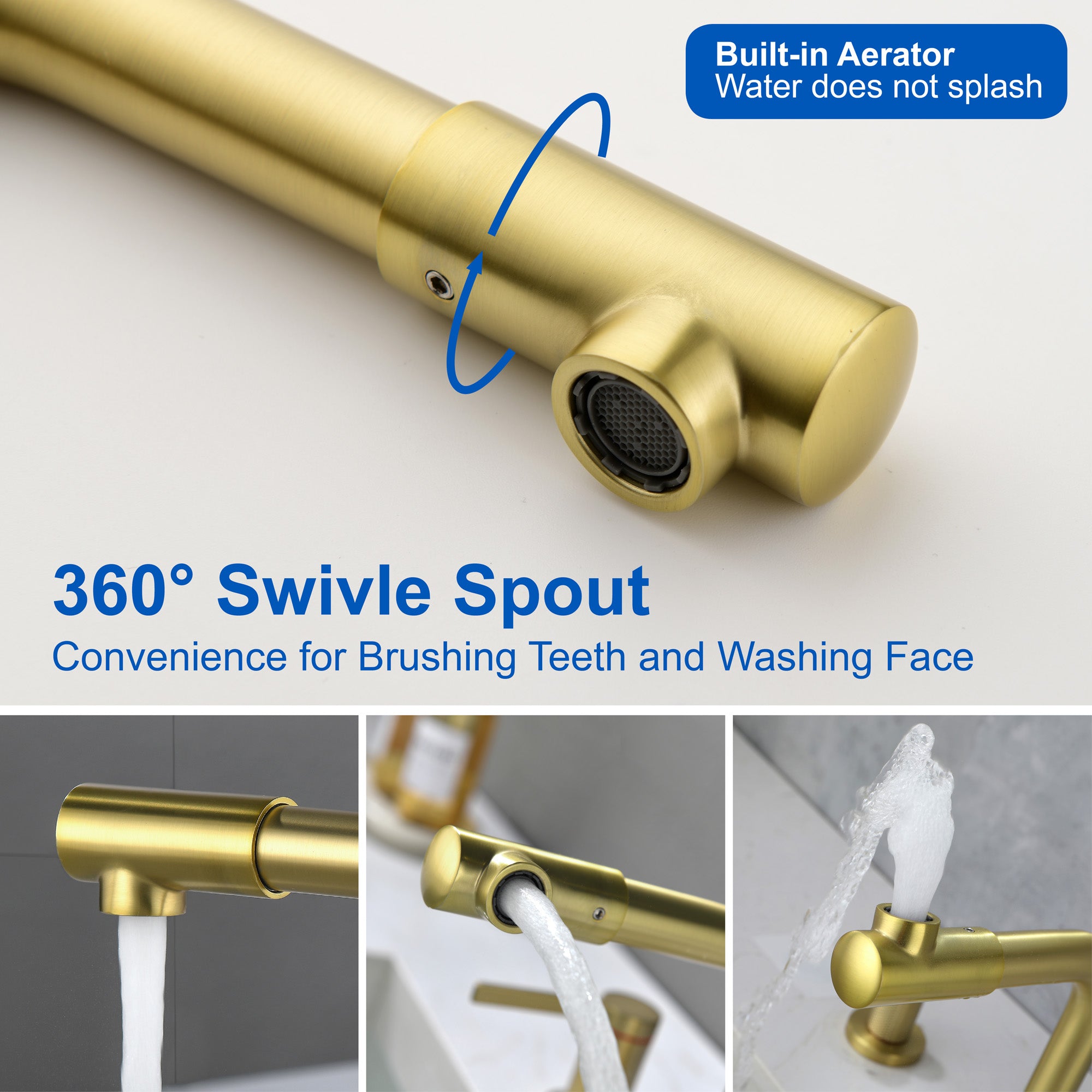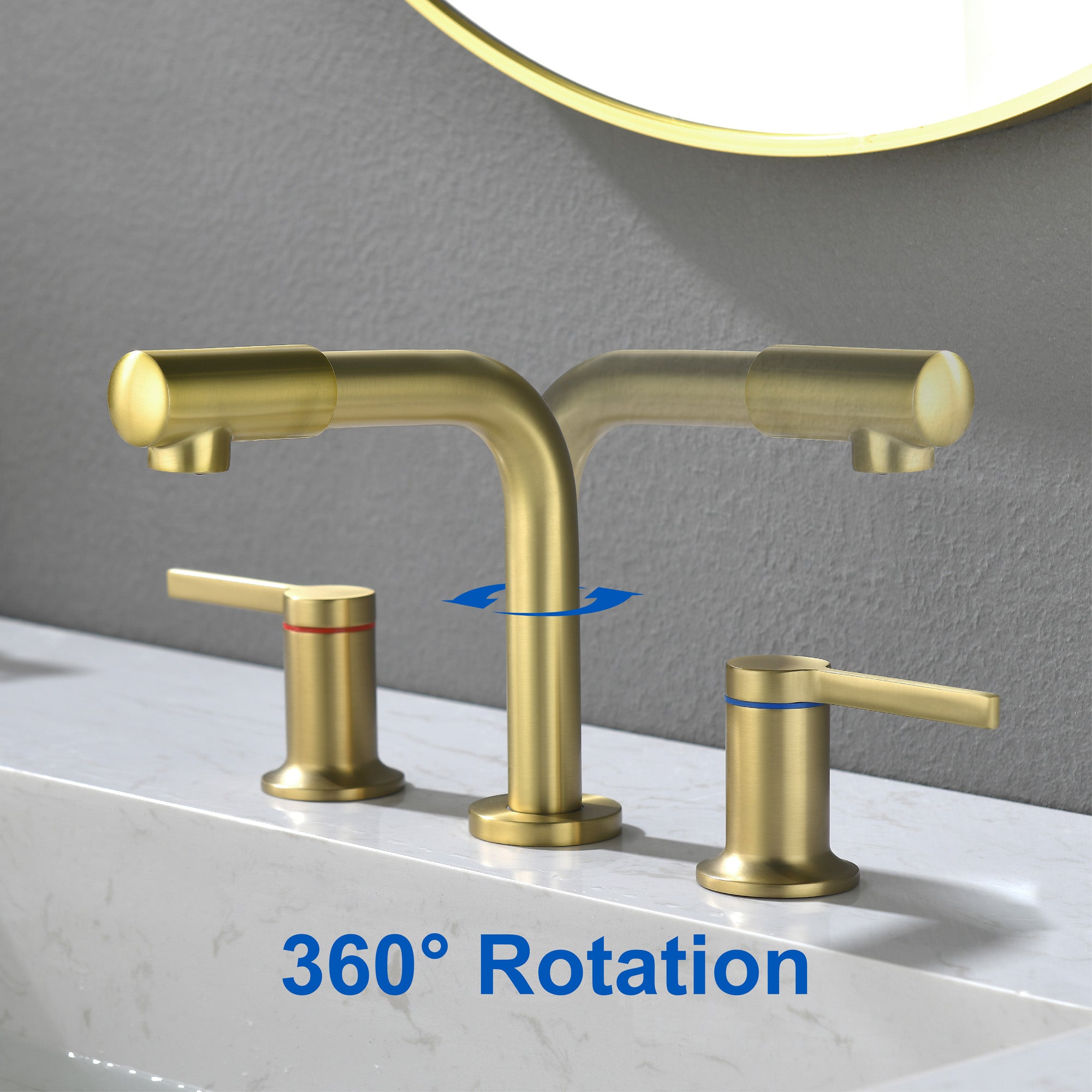 Widespread Bathroom Faucet with 360 Degree Swivel Nozzle and Spout 2 Unique Knob Handles Bathroom Sink Faucet 3 Hole