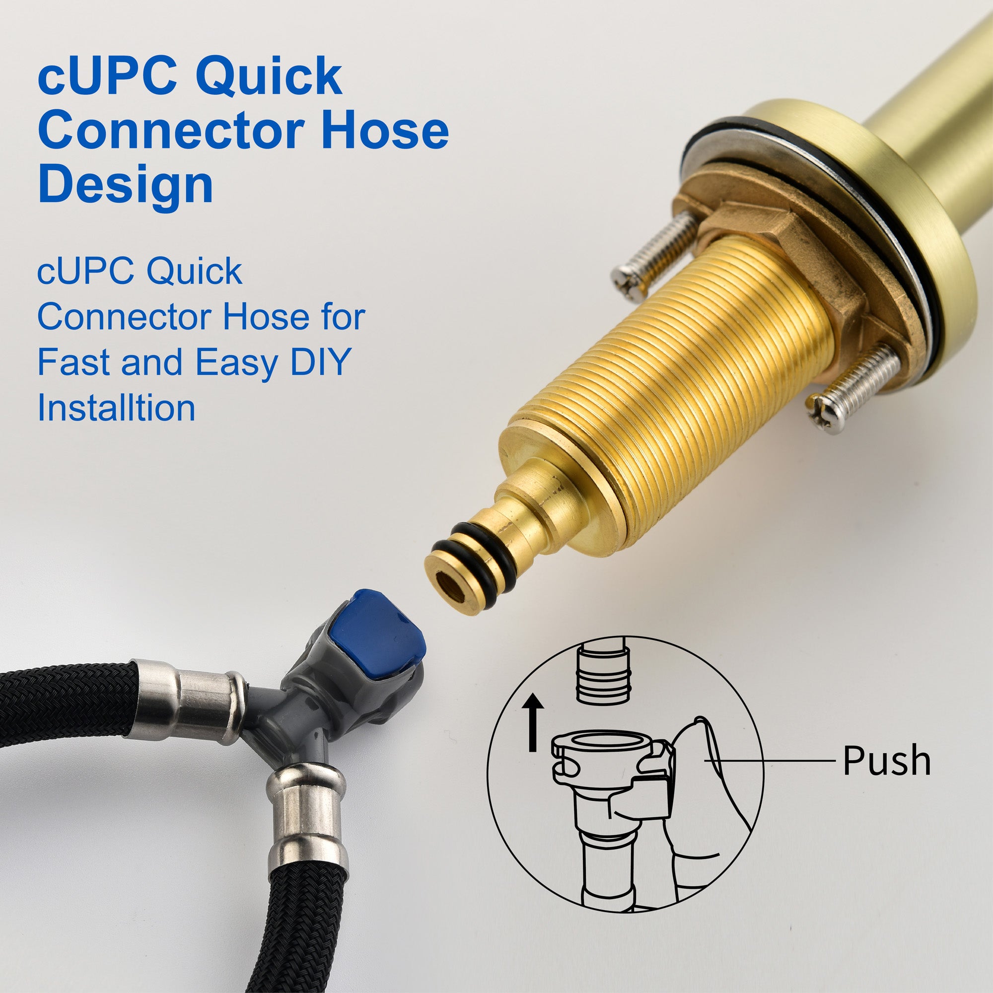 - Great design Quick-connect hose ensuring fast and easy DIY installation; Also come with 50CM stainless steel braided hot & cold water supply hoses(Certificated by cUPC) with US standard 9/16-24 UNEF connector, easy to connect to your stop vales.