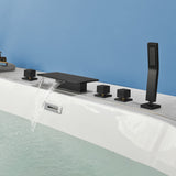 Deck Mounted Roman Bath Filler 5-Hole 2-Handle tub faucet trim with High Pressure Hand Shower and SUS304 Bath Tub Spout