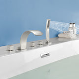 5-Hole Bathtub Mixer Deck Mounted Roman Bath Tub Filler with Hand-Held Shower Sprayer and Waterfall Spout
