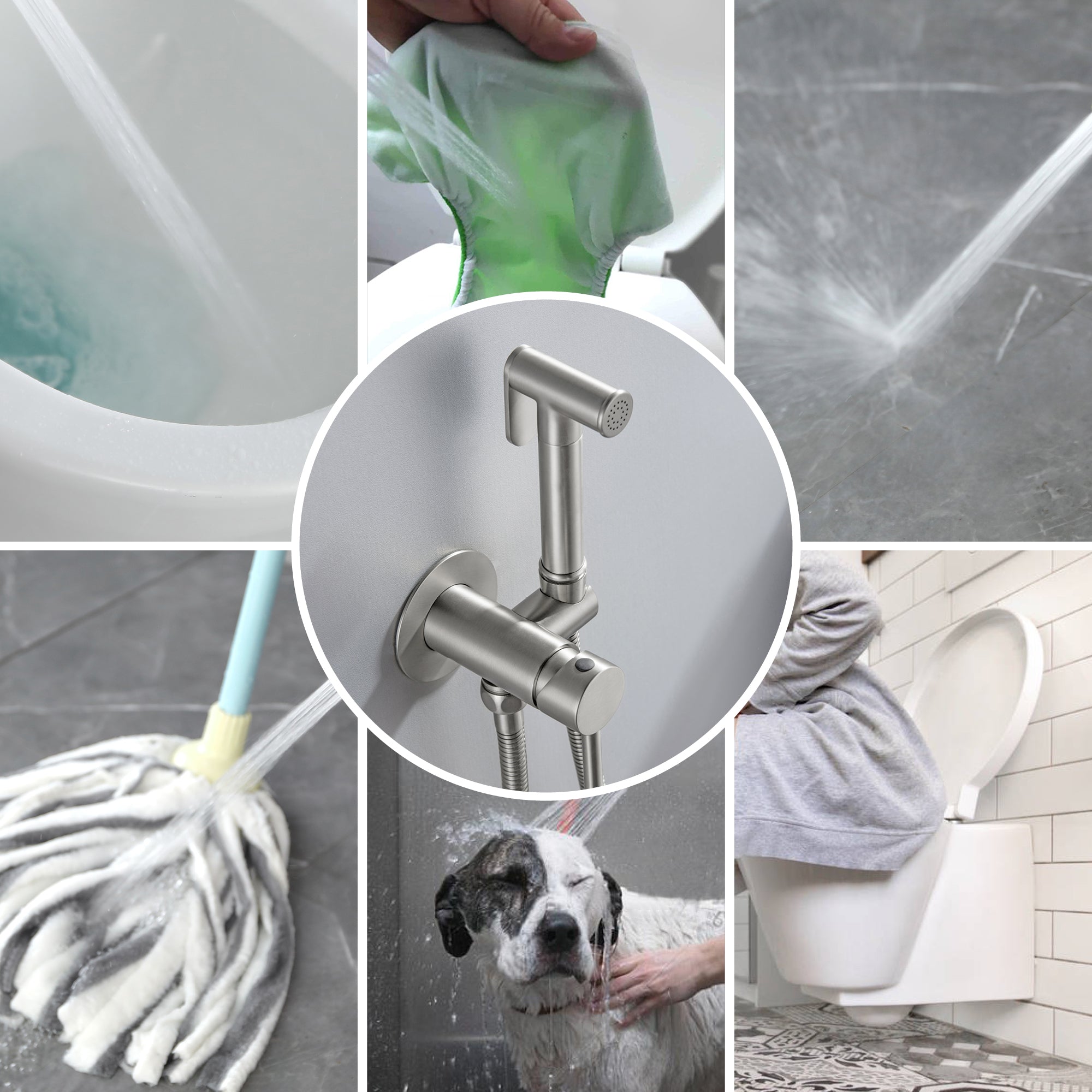 Stainless Steel Sprayer Head SHAMANDA bidet sprayer is composed of 304 stainless steel bidet nozzle, stainless steel hose and brass valve, resistant to corrosion and corrosion to better protect your hygiene. Multi-Purpose The SHAMANDA Handheld Bidet Sprayer is great for the whole family, especially for those with limited mobility due...