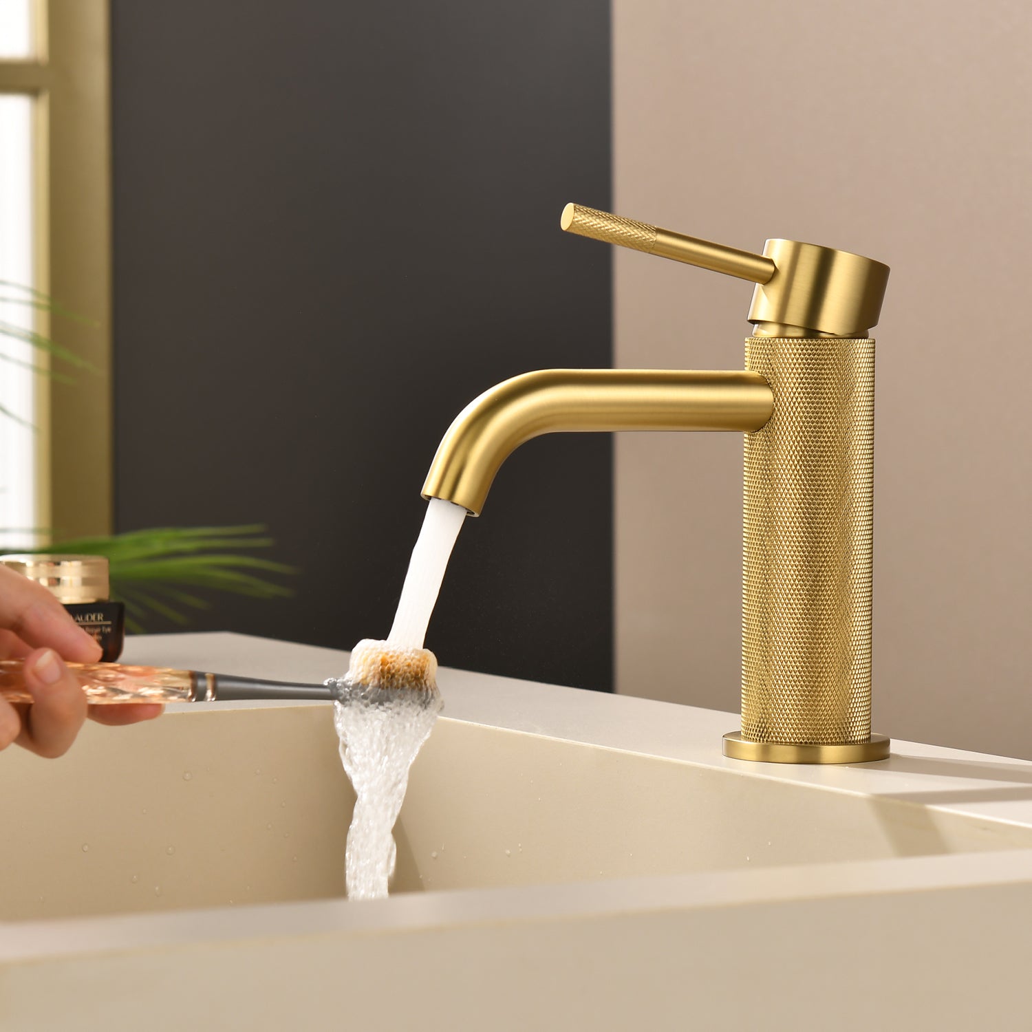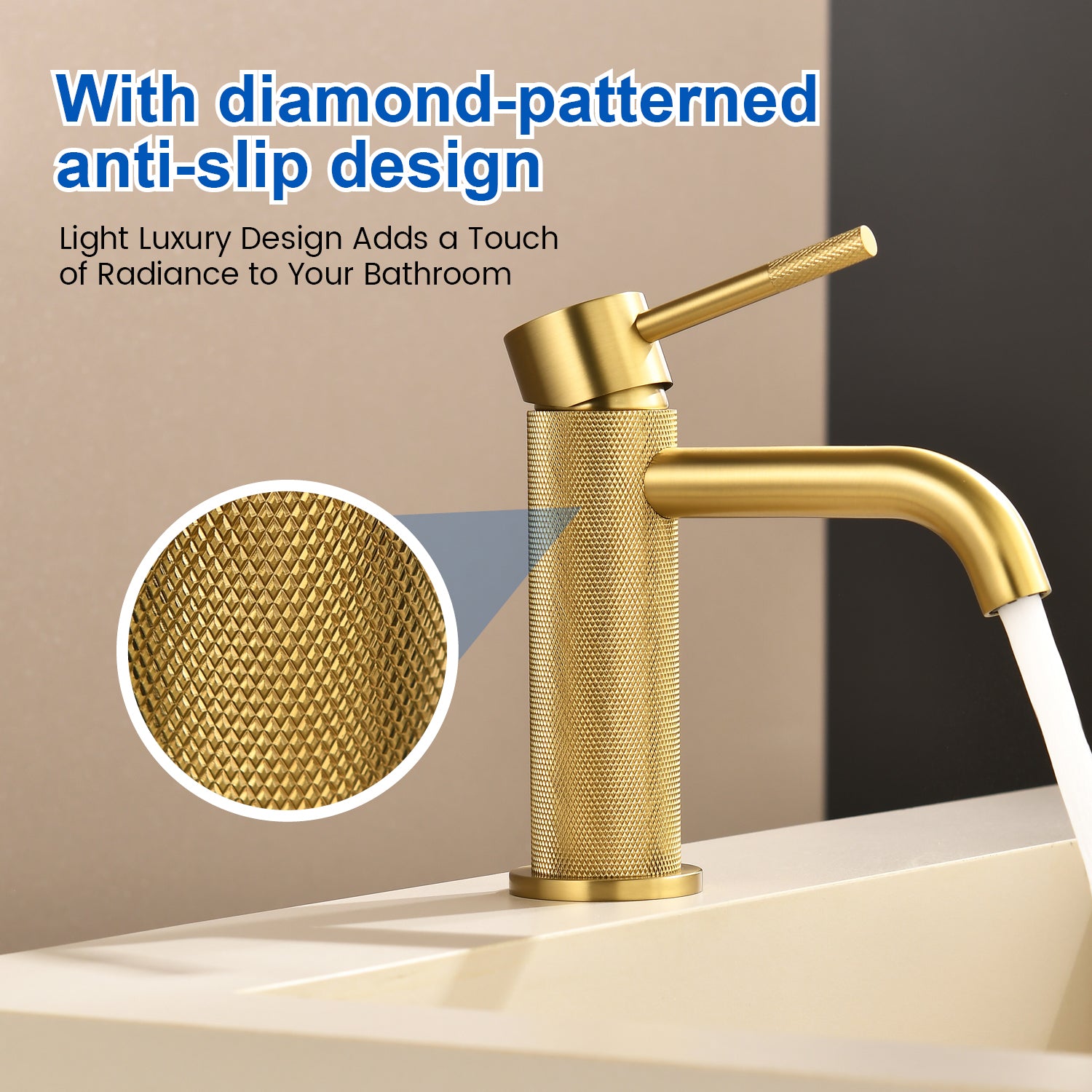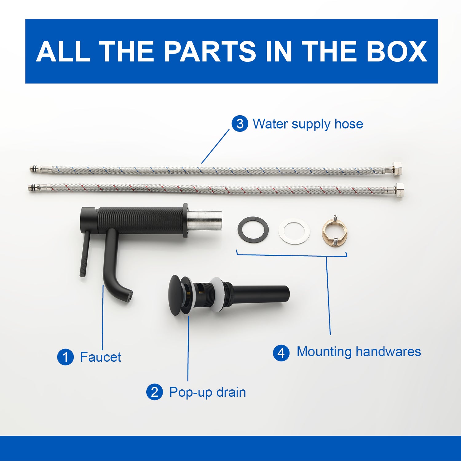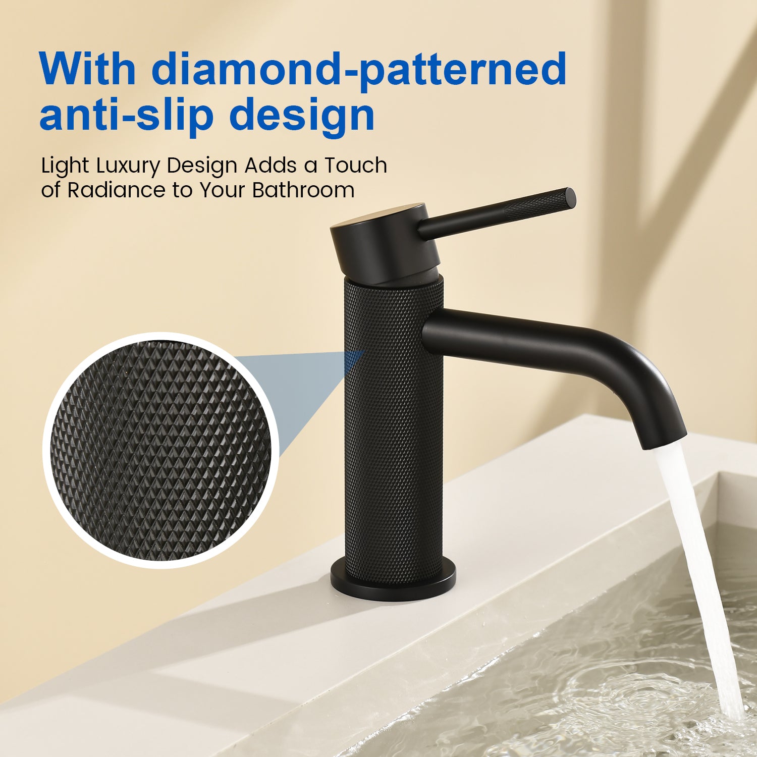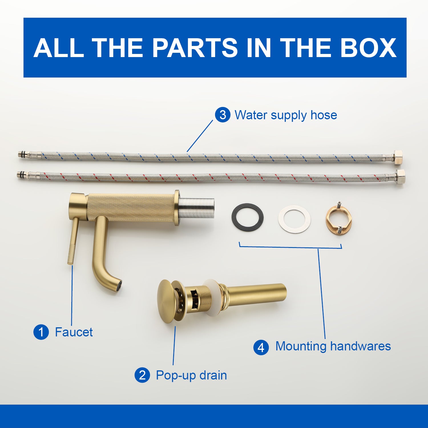 Deck-Mounted Single Handle Lavatory Faucet One Hole Faucet Bathroom with Pop Up Drain In Matte Black, Chrome, Brushed Nickel, Brushed Gold