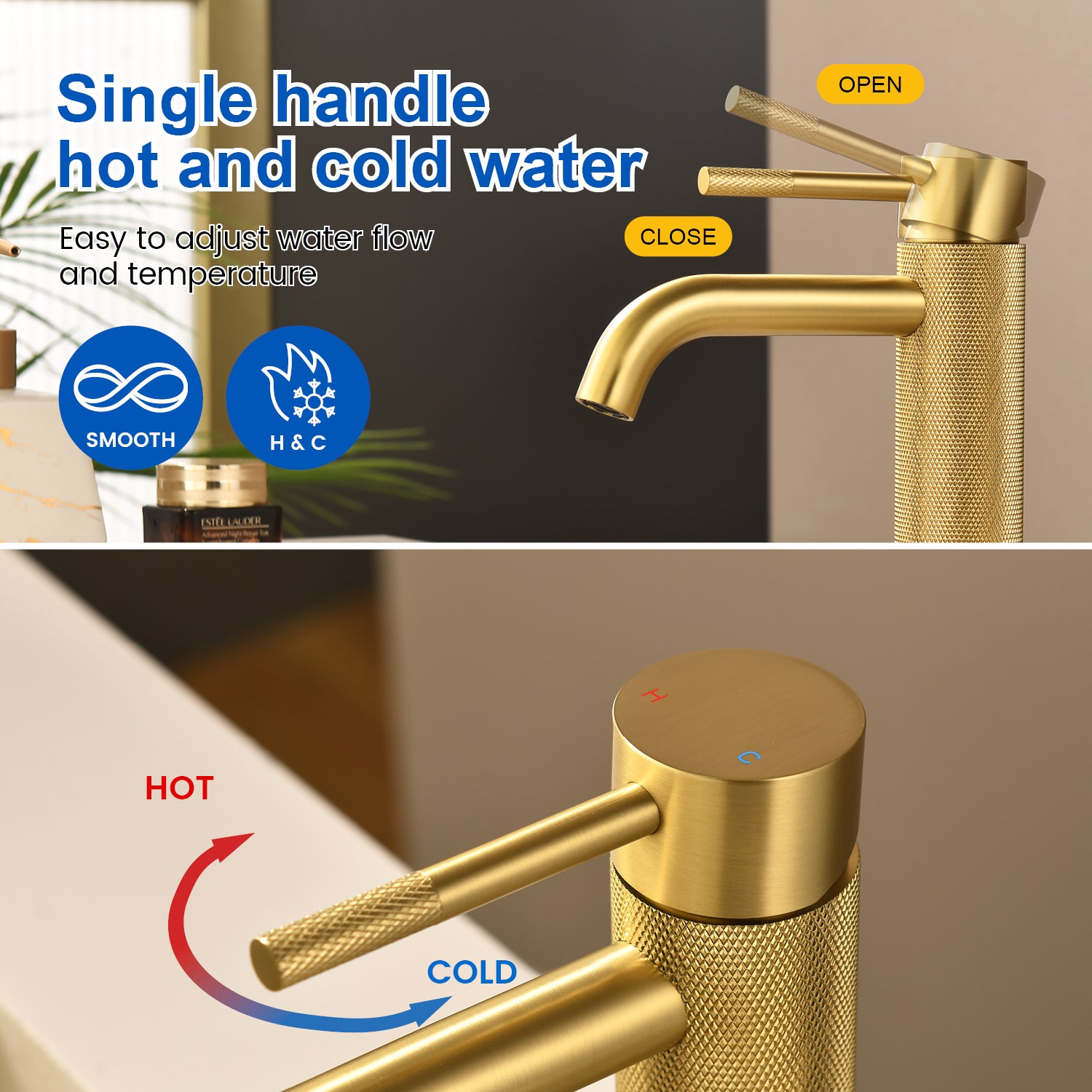 - Our bathroom sink faucet is made of solid brass, which is strong and durable, long service life and bright color adds a bright color to your bathroom.