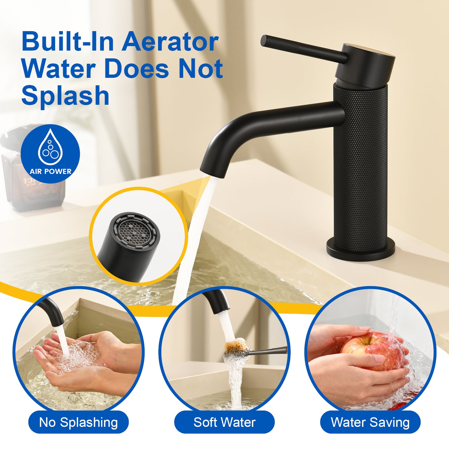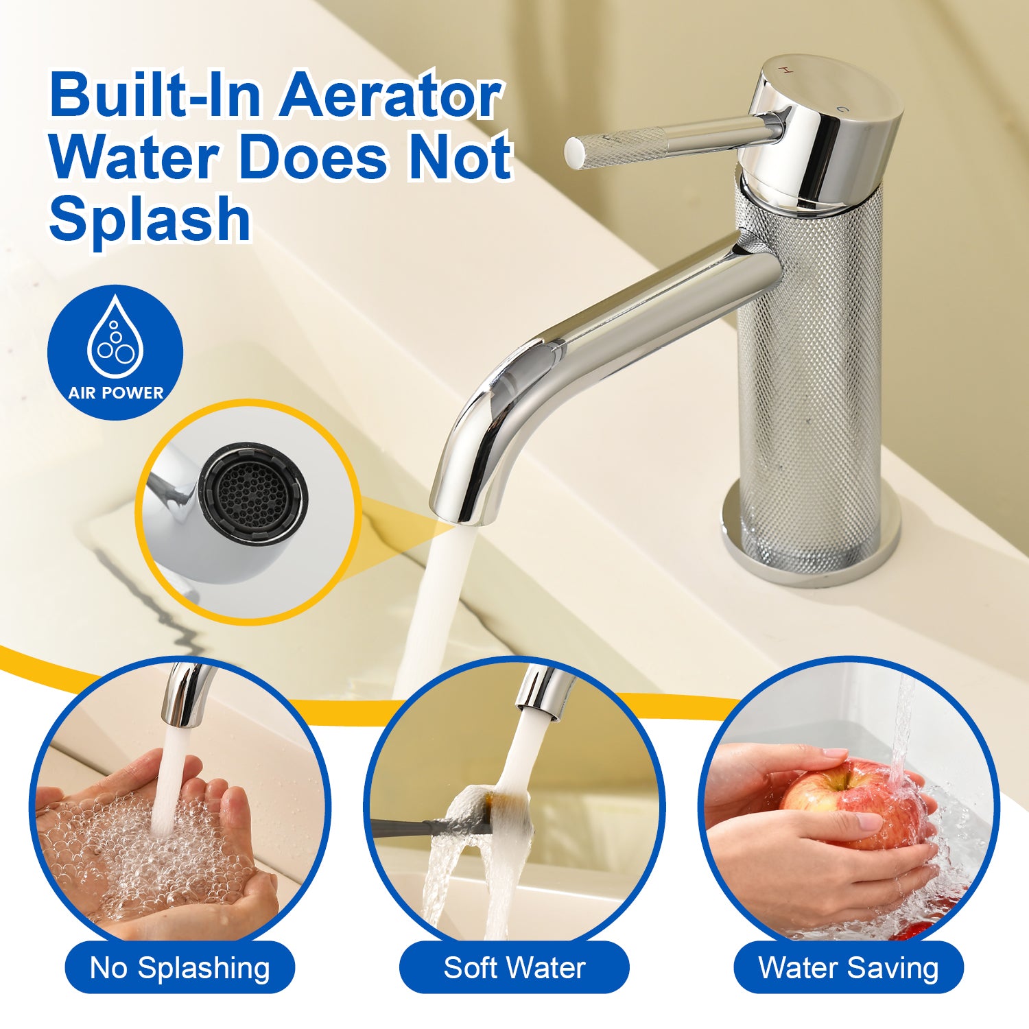 Built-In Aerator The built-in aerator in the bathroom faucet not only makes the water flow softer, but also saves more water and reduces noise. Single-Handle Bathroom Faucet The smooth handling of a single lever makes it easier to regulate water flow or temperature. A clear and steady laminar stream that...