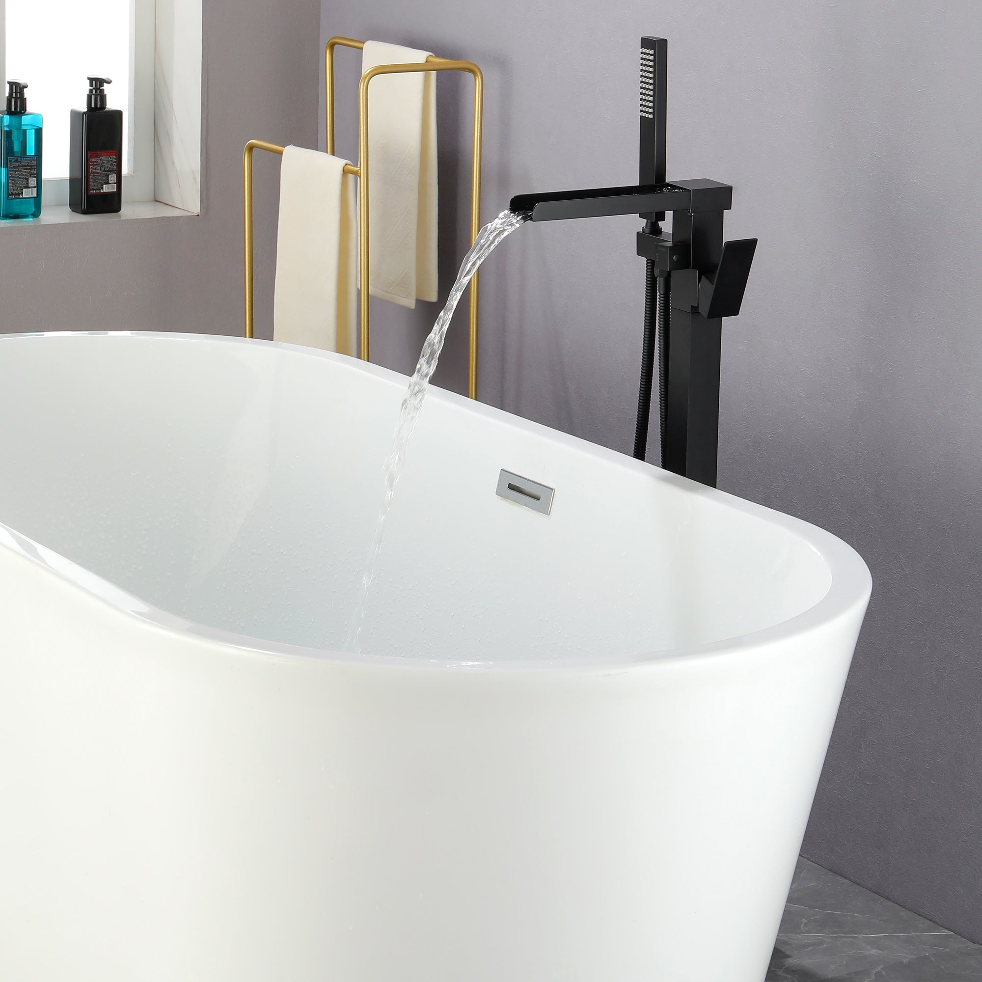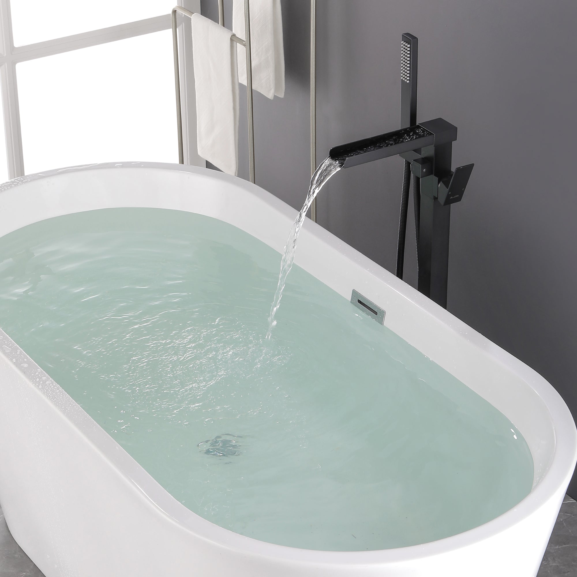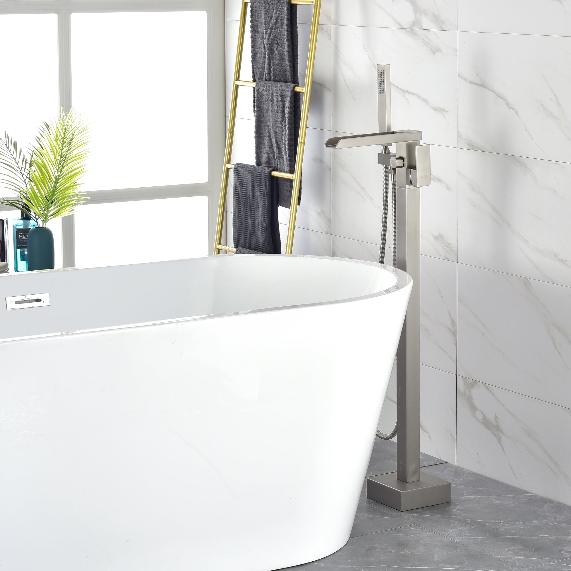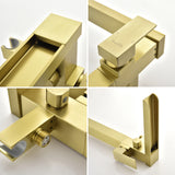 Freestanding Bathtub Faucet Single Handle Waterfall Tub Filler with Handheld Shower Brushed Gold
