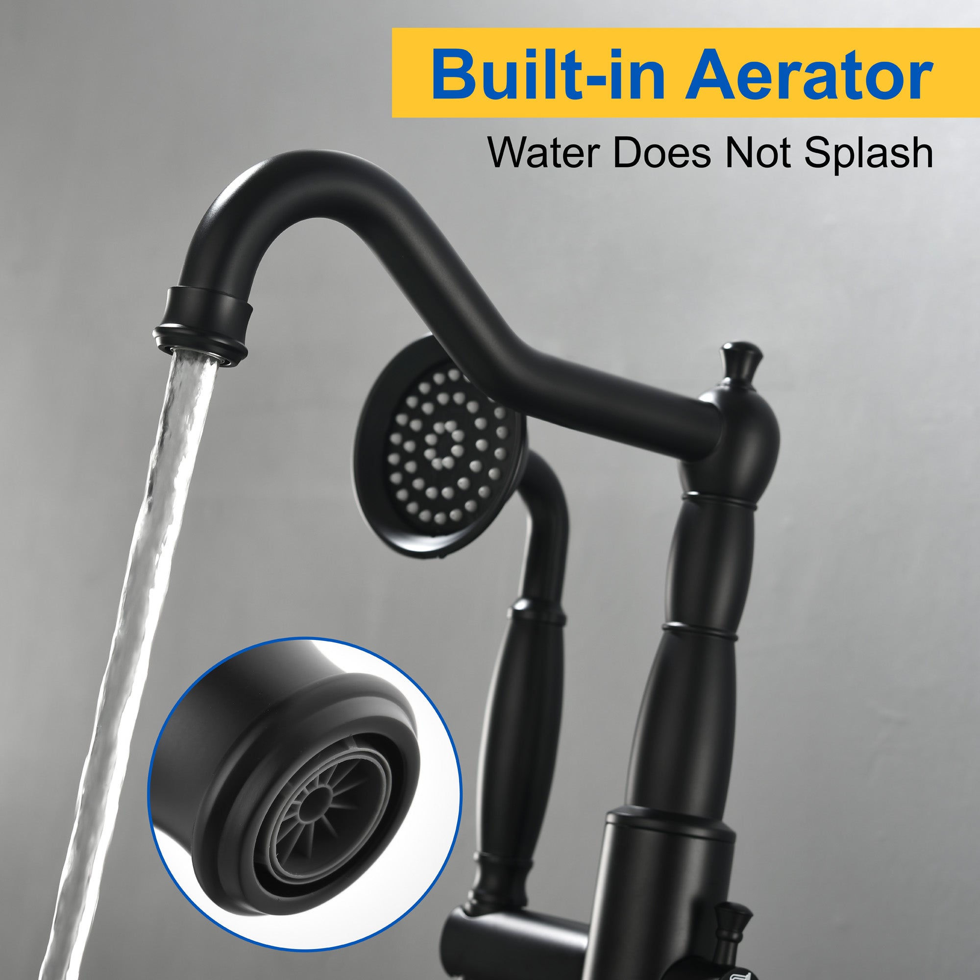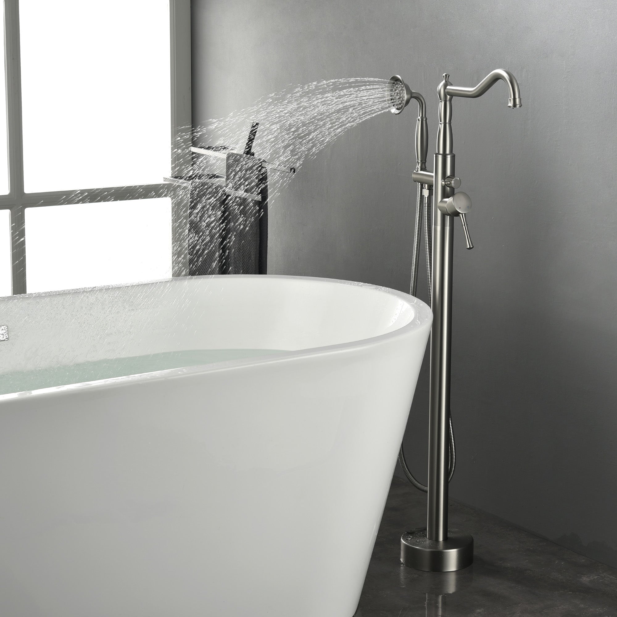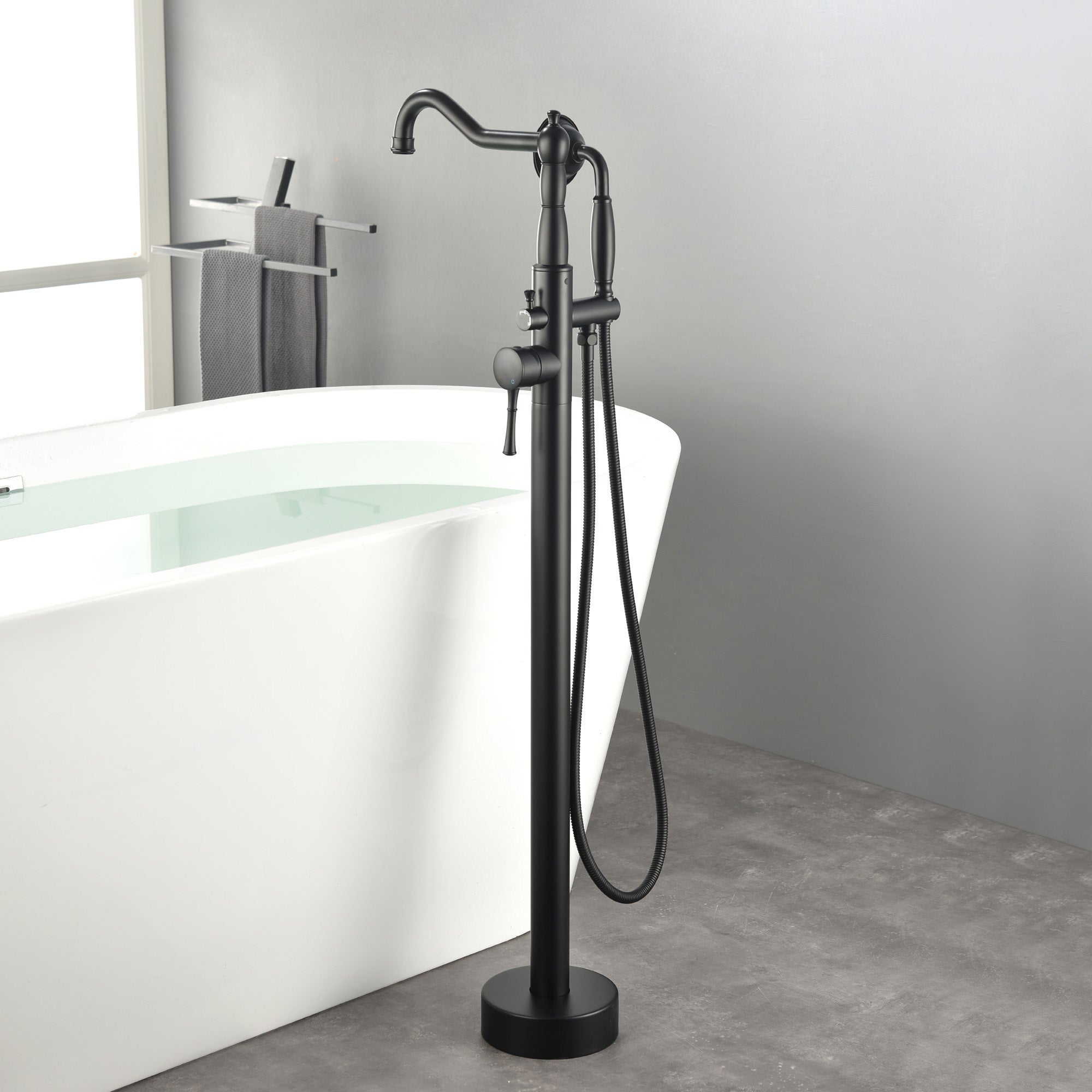 Freestanding Floor Mount Tub Filler with Handheld Shower Roman Bathtub Faucet by Finish, Swivel Spout with Brass Rough-in and Water Hose