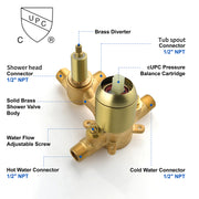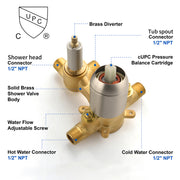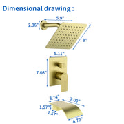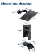 Shower System with Waterfall Tub Spout, Tub and Shower Faucet Trim Kit with Rough in Valve, Shower Tub Faucet Set Wall Mounted