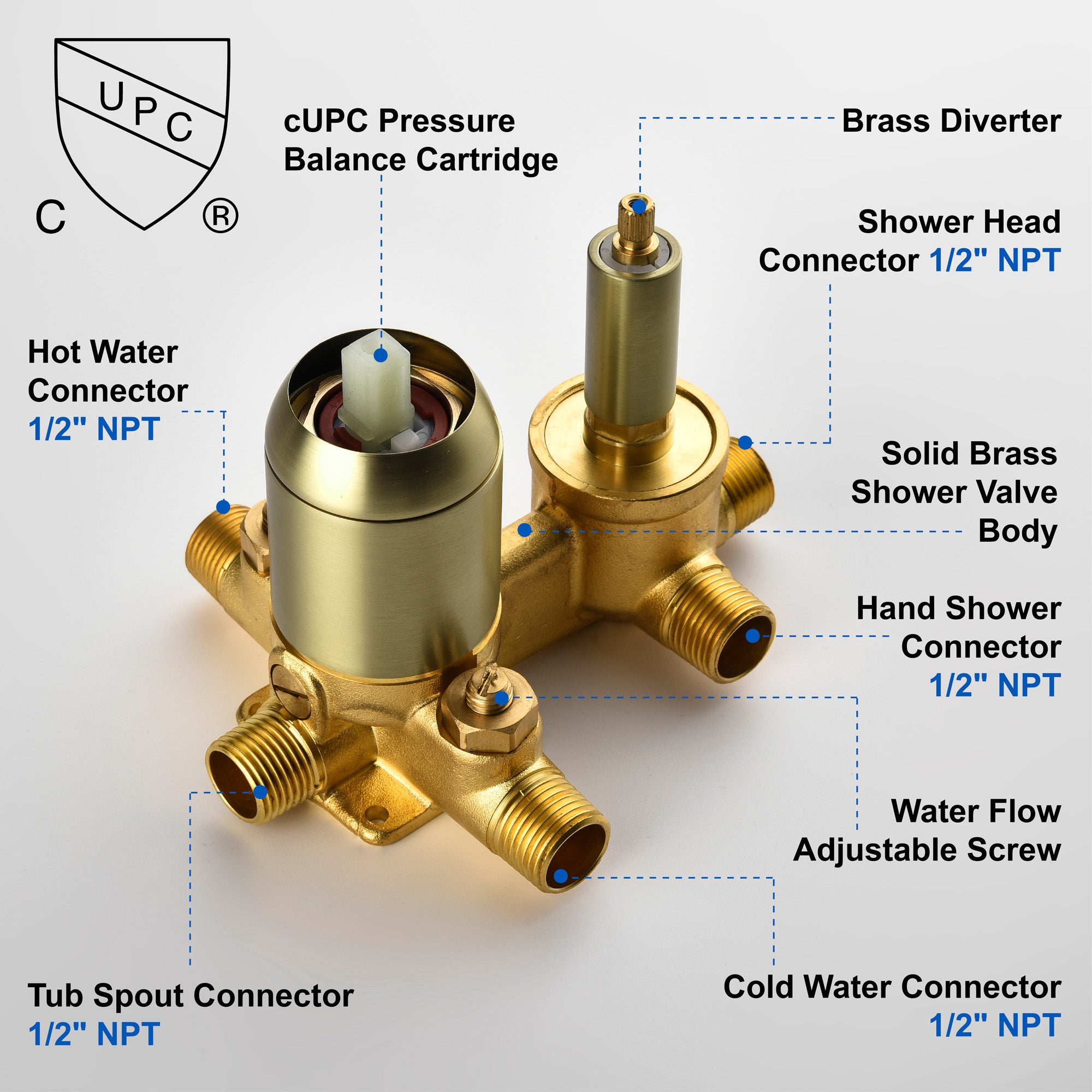 - Advanced monitor pressure balance ceramic disc cartridge with cUPC certification can effectively protect you or your family from scalding injury caused by sudden changes in hot or cold water pressure: such as your child rush the toilet meanwhile you are showering; Built-in check valve can effectively prevent banging noise(water hammer phenomenon)