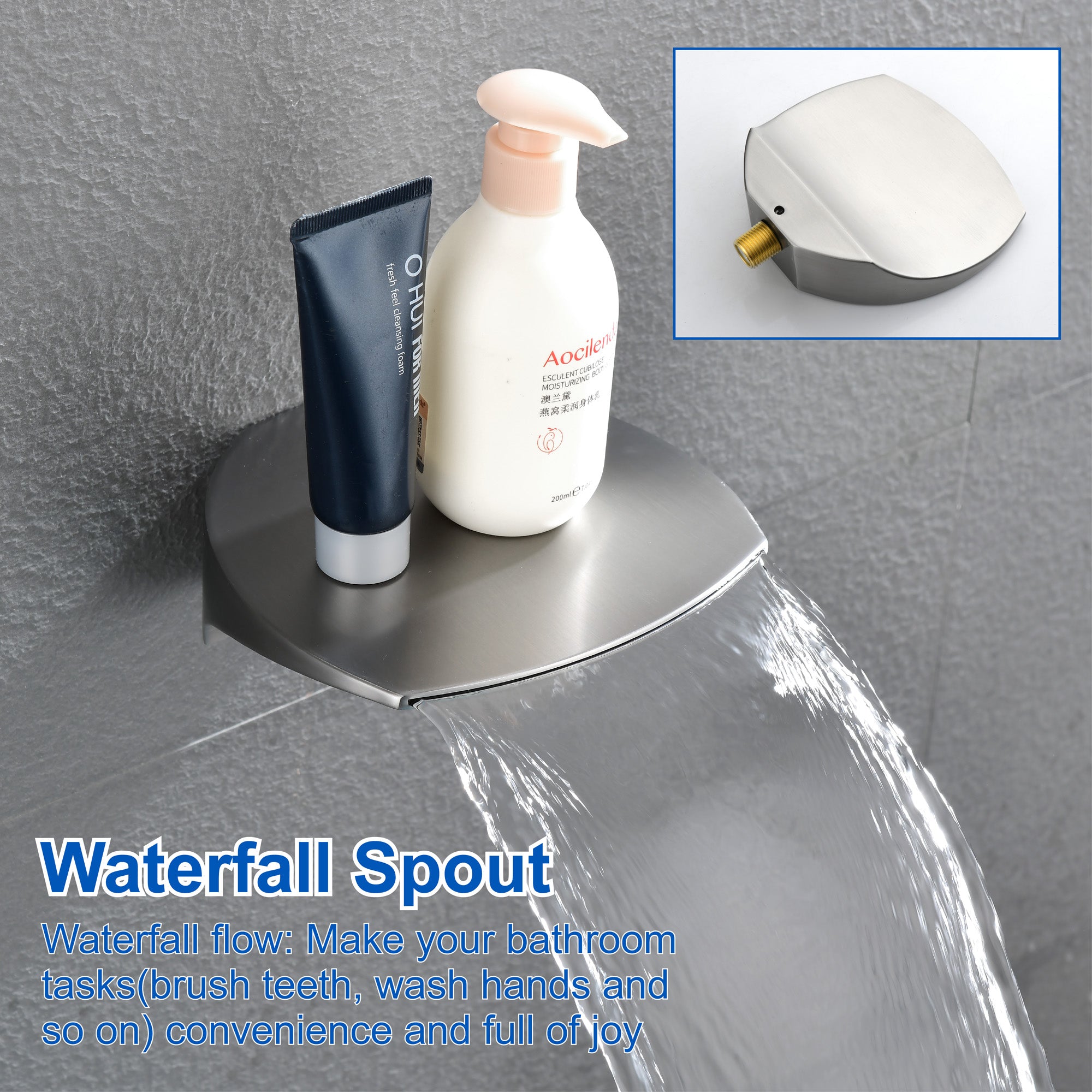 - Standard 1/2" NPT tapered threads, compatible with most shower systems; You can adjust the spray angle of the showerhead and handheld through the swivel connectors to get a wonderful shower experience; High water pressure waterfall tub spout can fill up your bathtub quickly