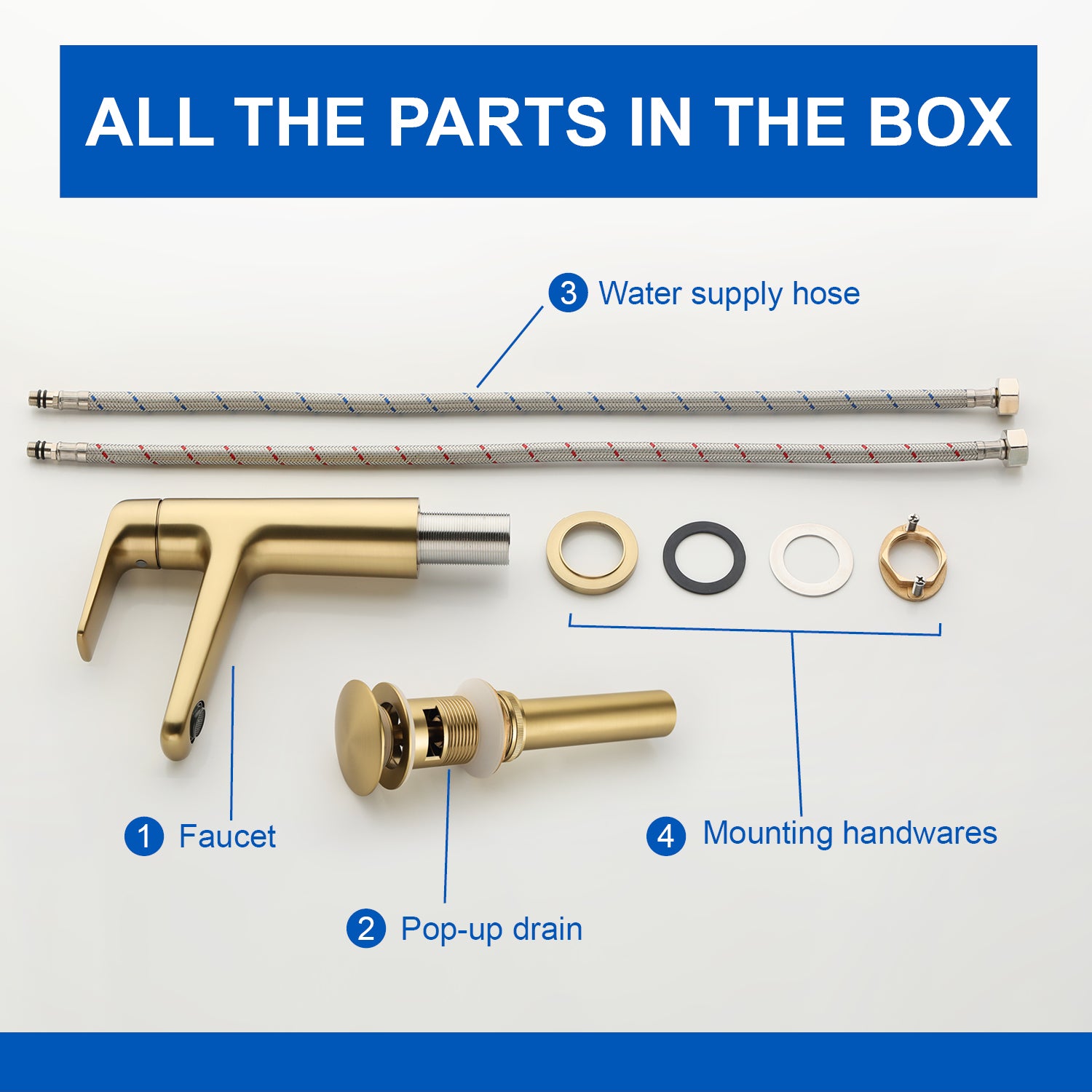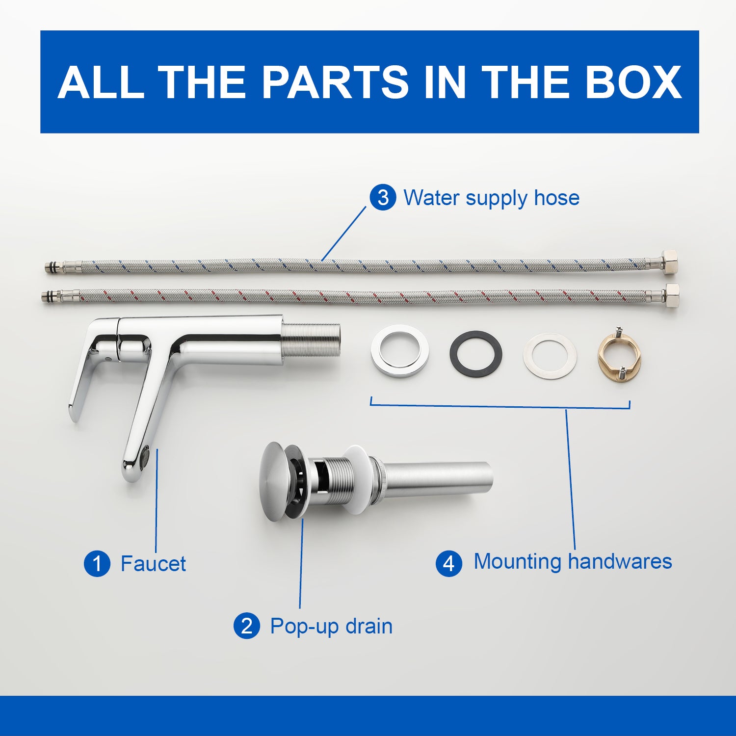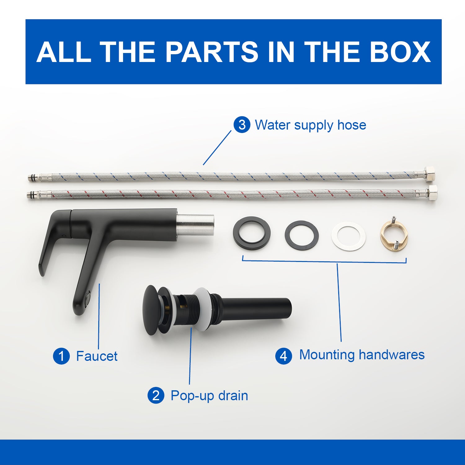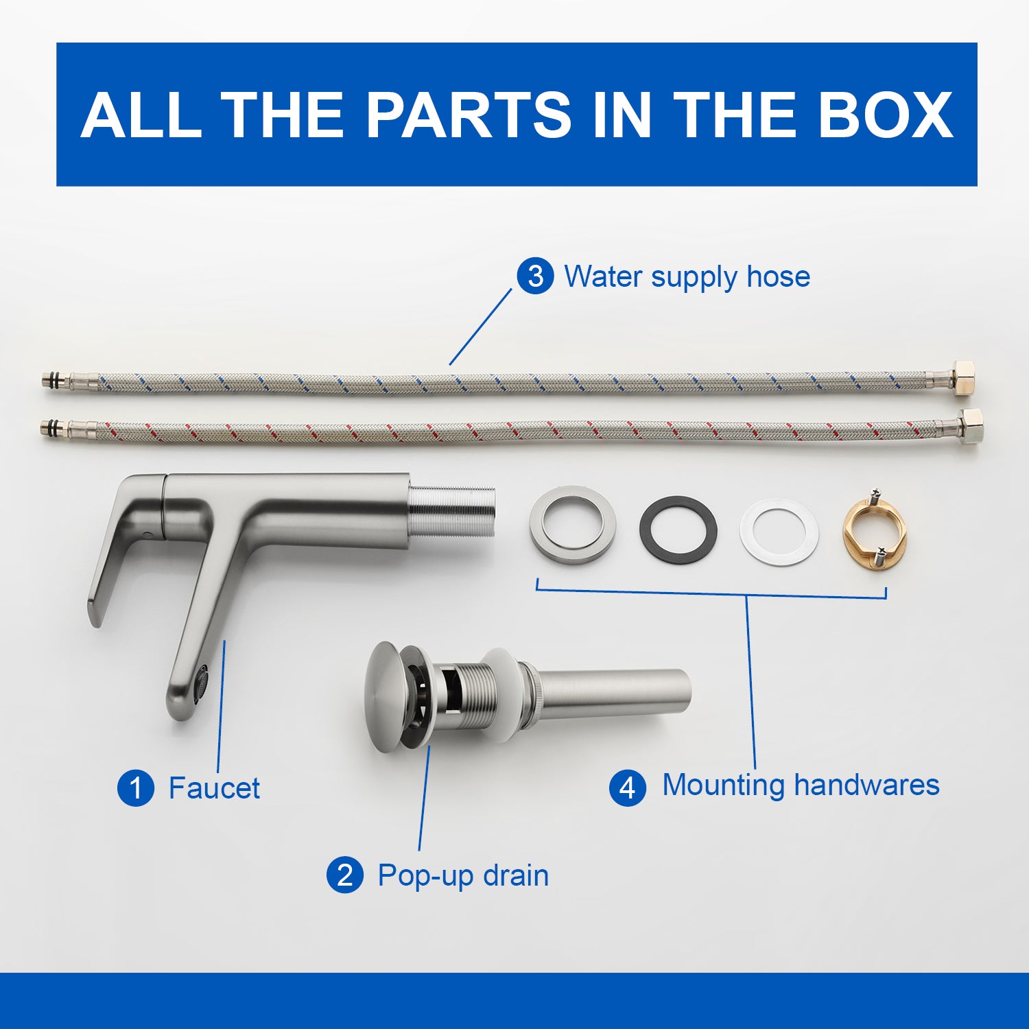 - The bathroom faucet is accompanied by a pop-up drain, which is simpler and more convenient to use, and easier to seal and release the drain.