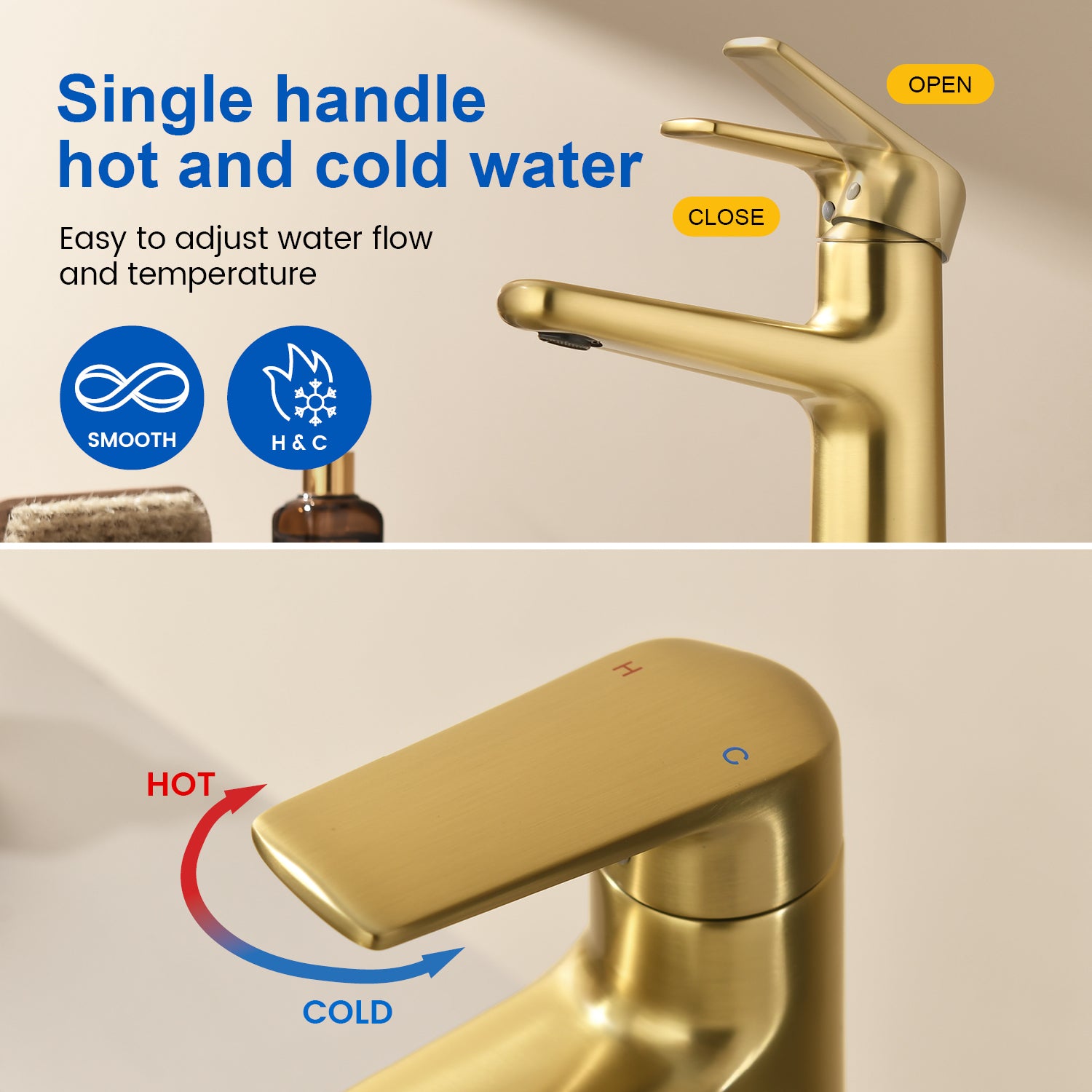 - Our bathroom sink faucet is made of solid brass, which is strong and durable, long service life and bright color adds a bright color to your bathroom.