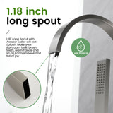 - The simple and elegant style with smooth lines and curves will refresh your bathroom, modern and stylish, suitable for any decor style. The tall, stable tripod base includes brackets and bolts to secure the faucet to the floor.