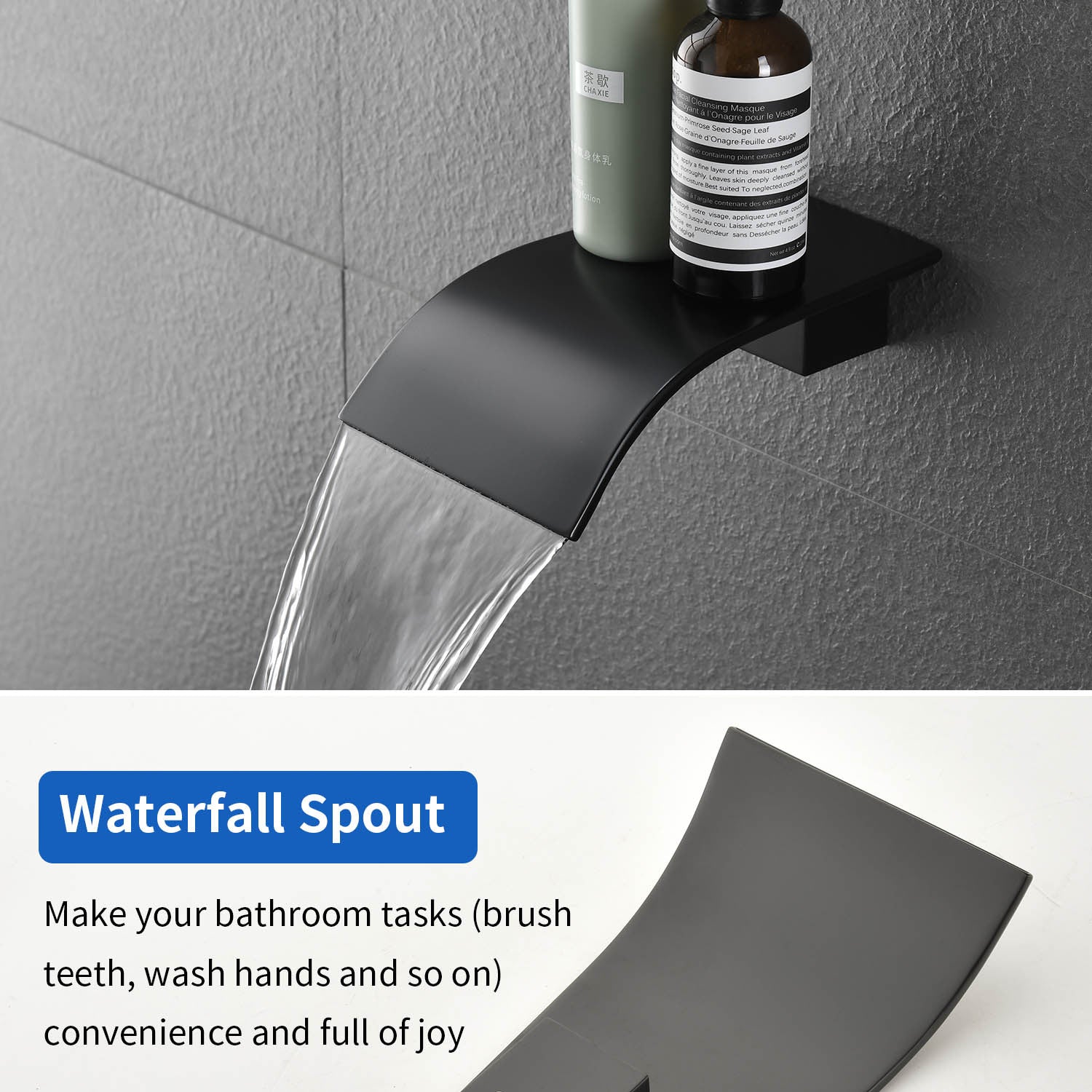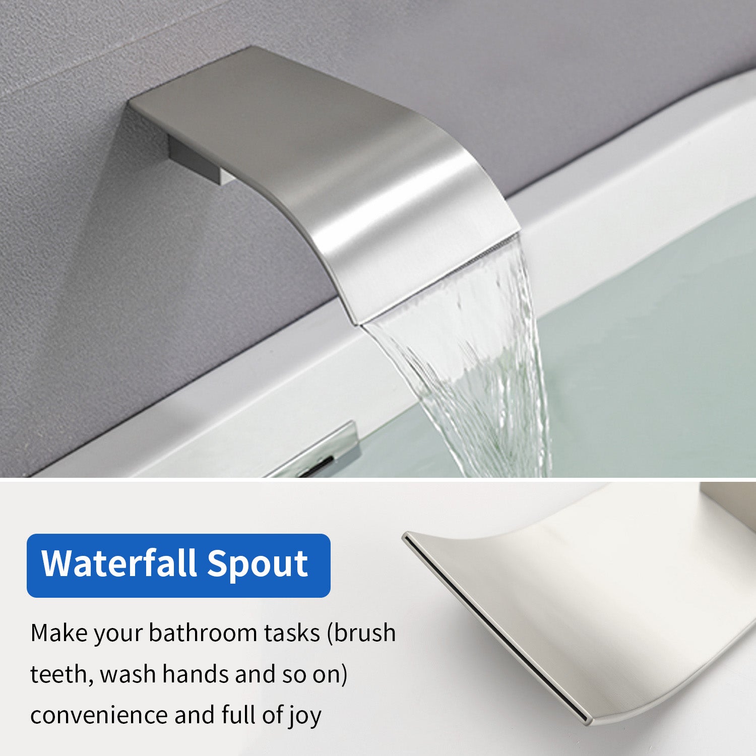 - Wide and flat spout, deliver a sheet of laminar water to tub & basin, can be filled up in minutes. Create a beautiful waterfall which will be an enjoyable scene when you are taking a bath.