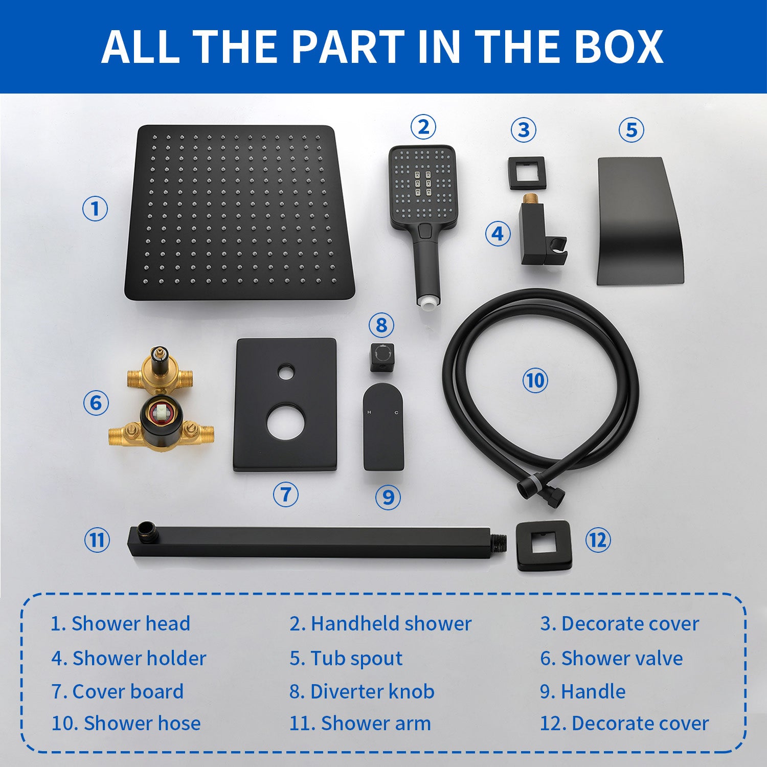 - Just simply switch the diverter knob to select 10" shower head, hand shower or tub spout to start your wonderful& relaxed shower; U.S. Standard 1/2" NPT thread connector, you don't need to worry if the connector will fit your pipe thread or not any more. Comes with installation instructions, make your installation more easier