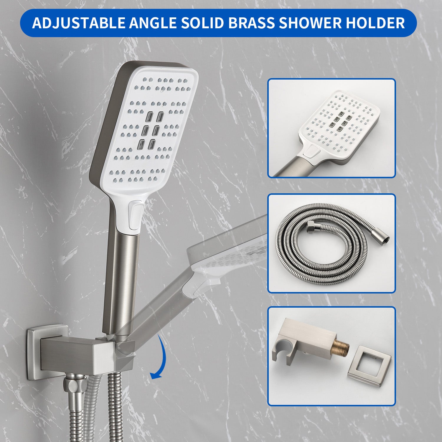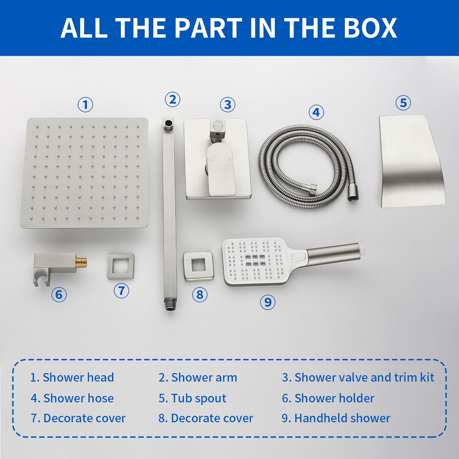 - Smooth, long lasting, drip-free operation ceramic disc cartridge, Single lever design for effortless flow and tempreture control; the modern and elegant shower head combo set can match all kinds of your bathroom decoration.
