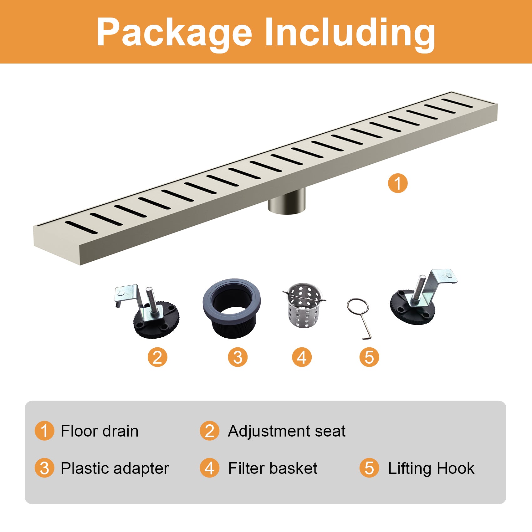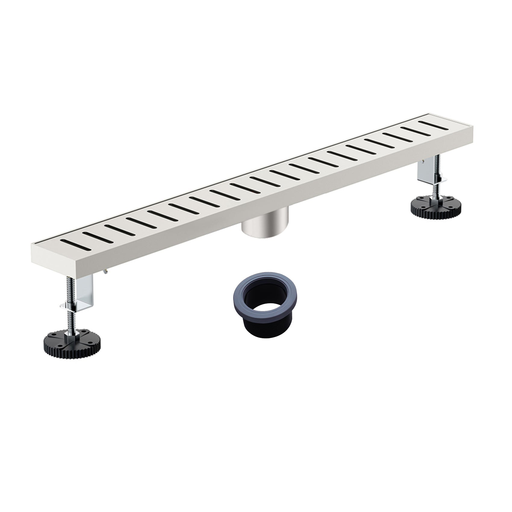 - Encountering uneven floors during renovation? This drain comes with adjustable feet for precise height calibration during installation. This ensures the long cover fits perfectly against the tiles, delivering a seamless, professional finish every time.