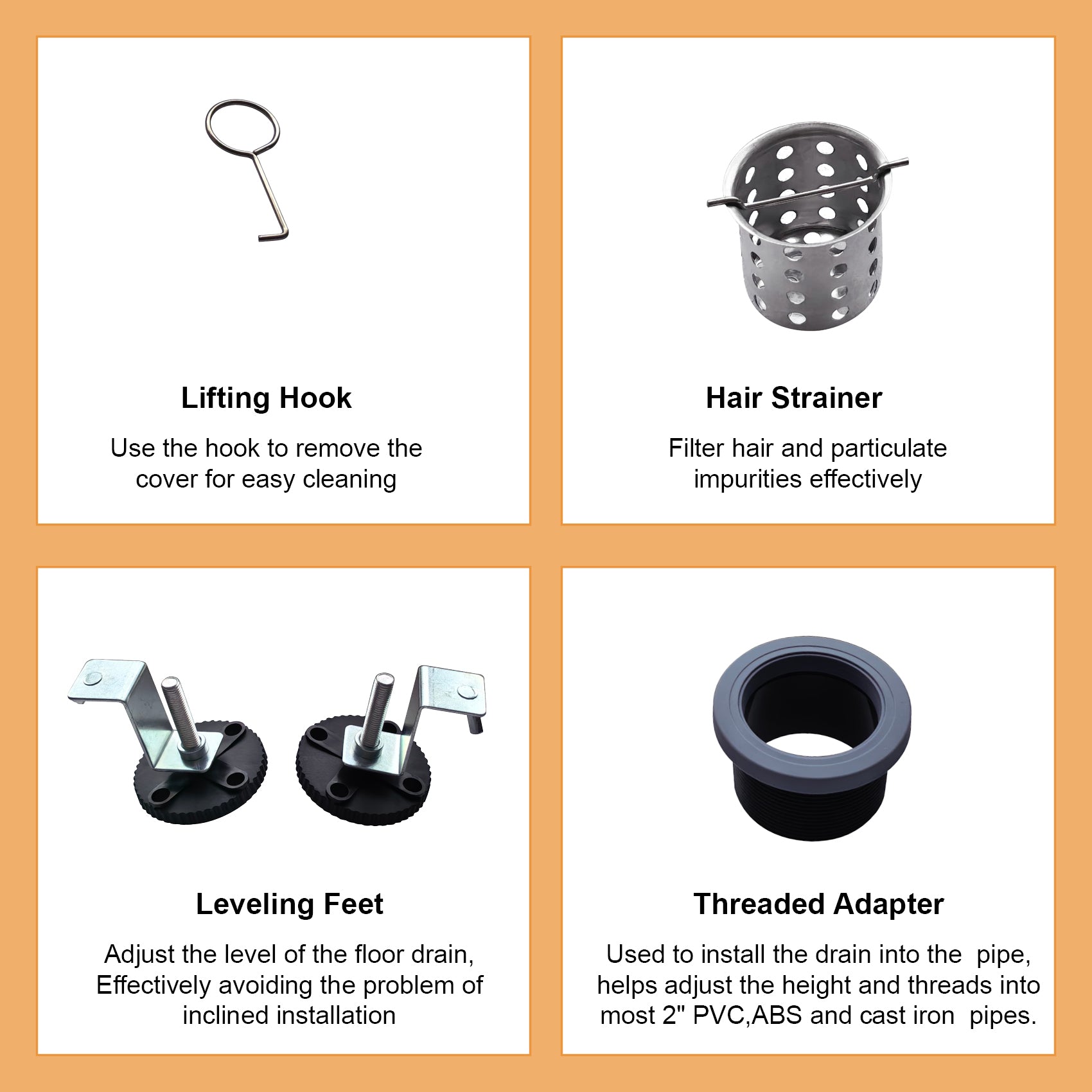 - Designed for North American standard plumbing, this drain comes with a threaded fitting compatible with 2-inch PVC, ABS, and cast iron pipes. Its adjustable installation height makes it versatile and perfect for new or remodeled projects.