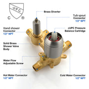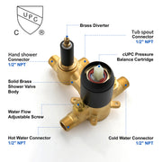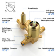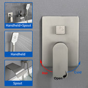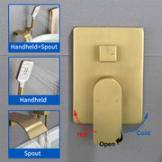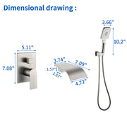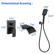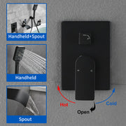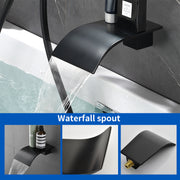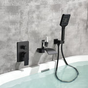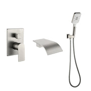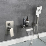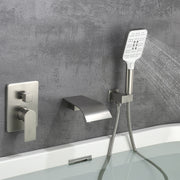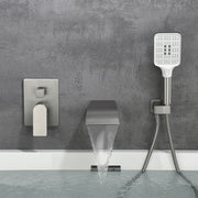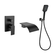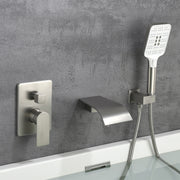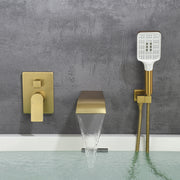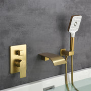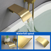 Waterfall Bathtub Faucet with Sprayer Wall Mounted Single Handle Brass Tub Filler - Matte Black, Bruhsed Nickel, Brushed Gold