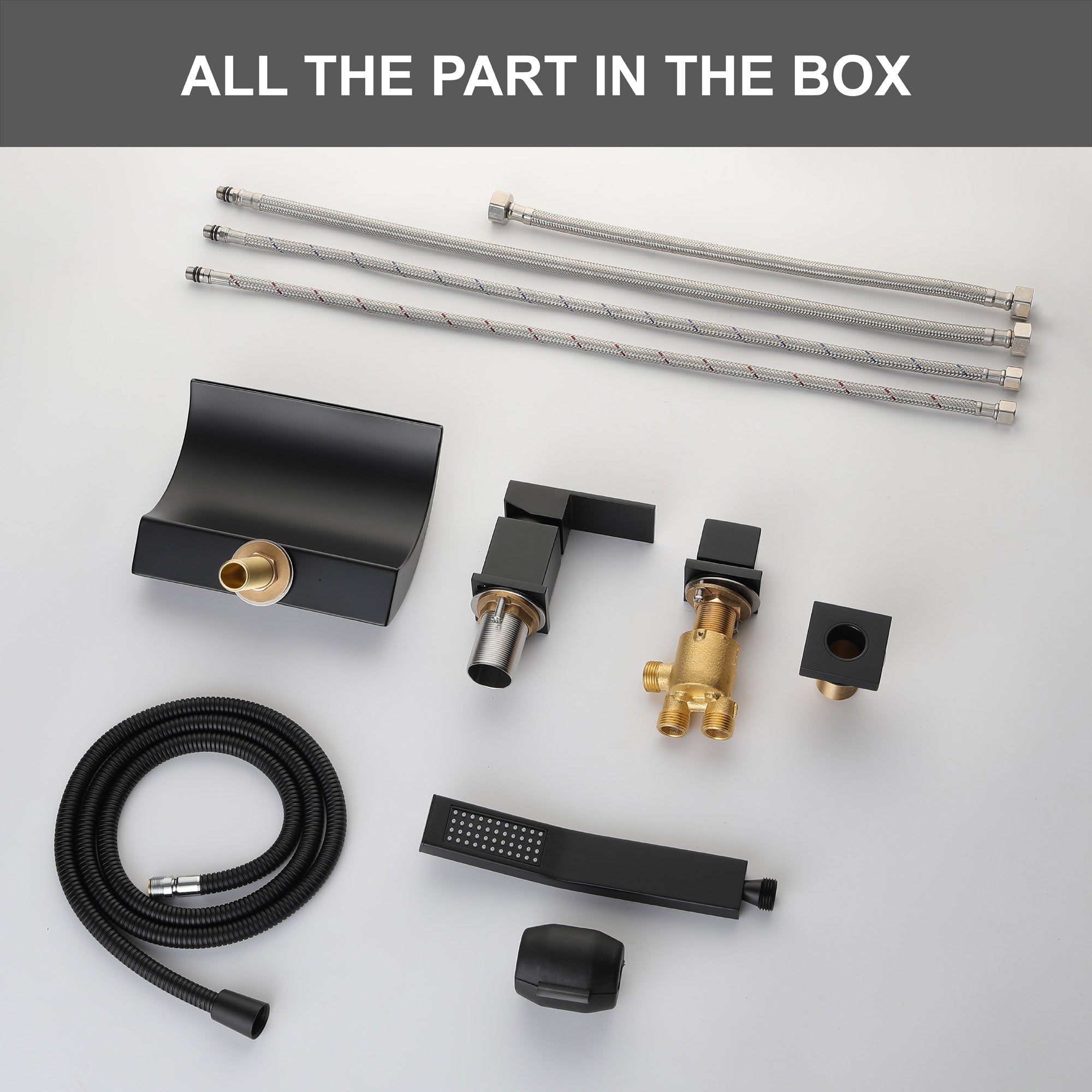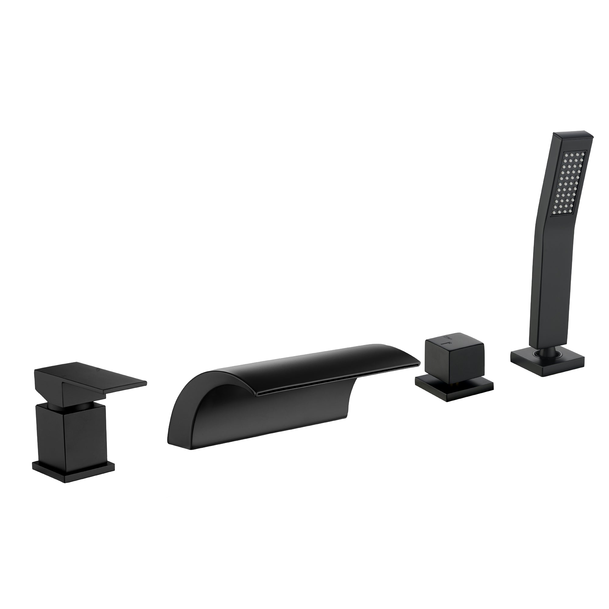 Waterfall Roman Tub Faucet with Sprayer Deck Mount Tub Filler with Hand Shower, Single Handle Bathtub Faucet Set