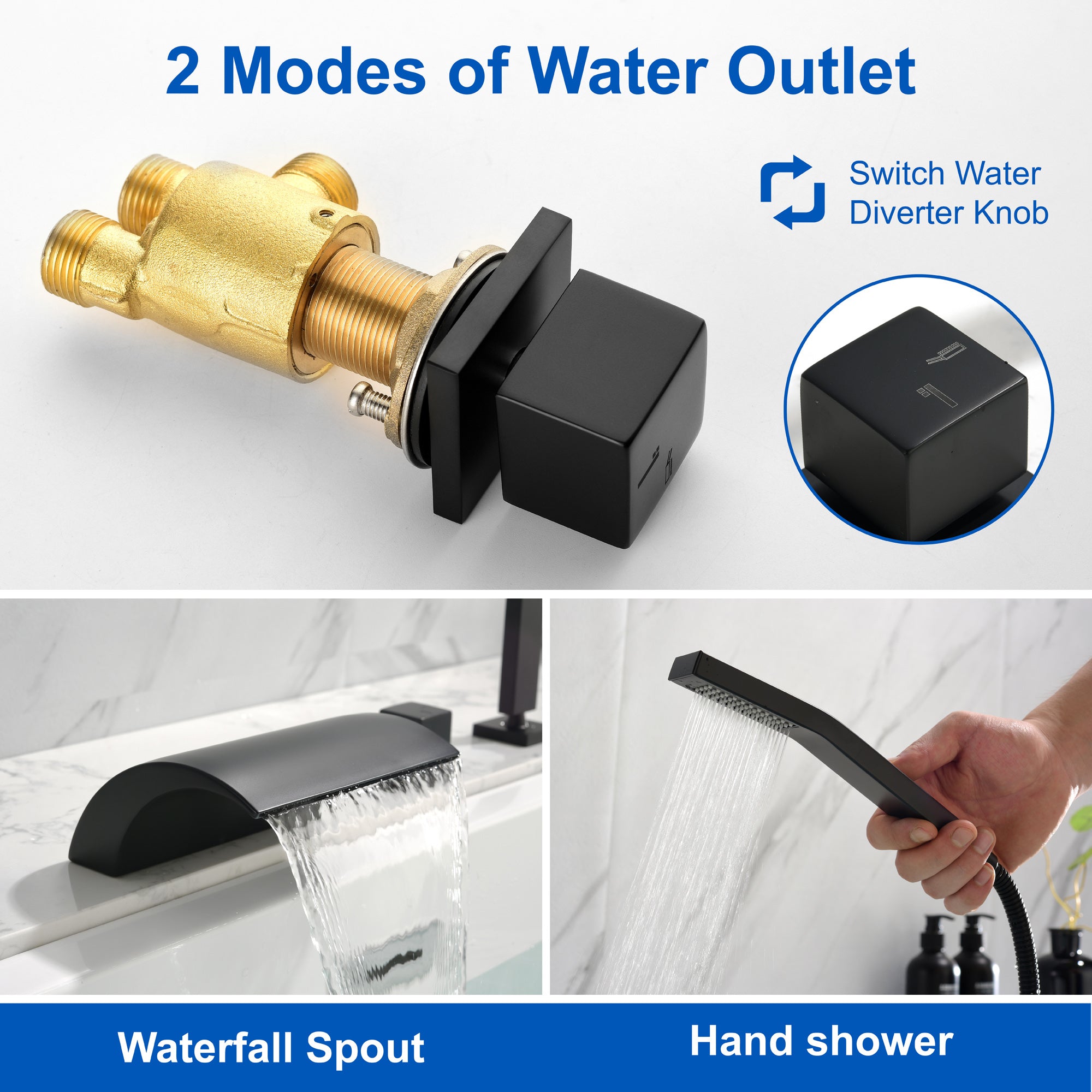 - Single handle easy to control hot water and cold water which is the best choice for bathtub.You Just simply rotate the lovely square knob to switch water to hand shower or waterfall spout.