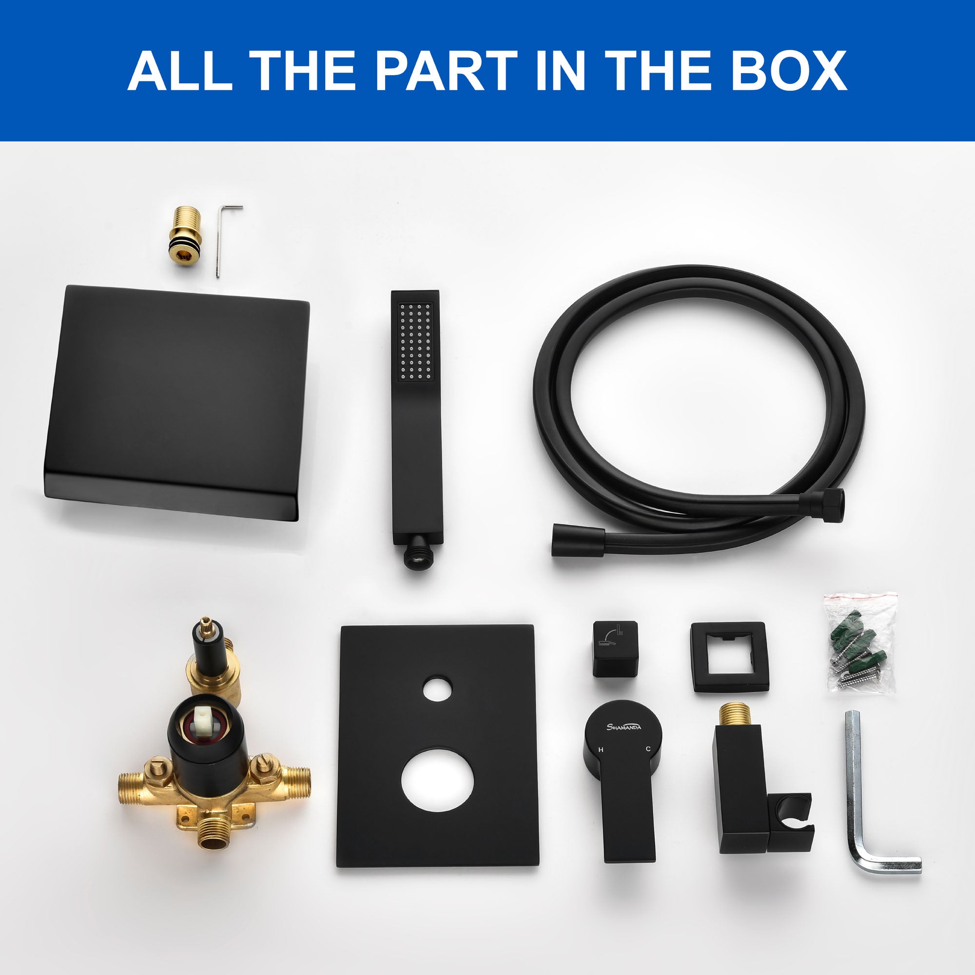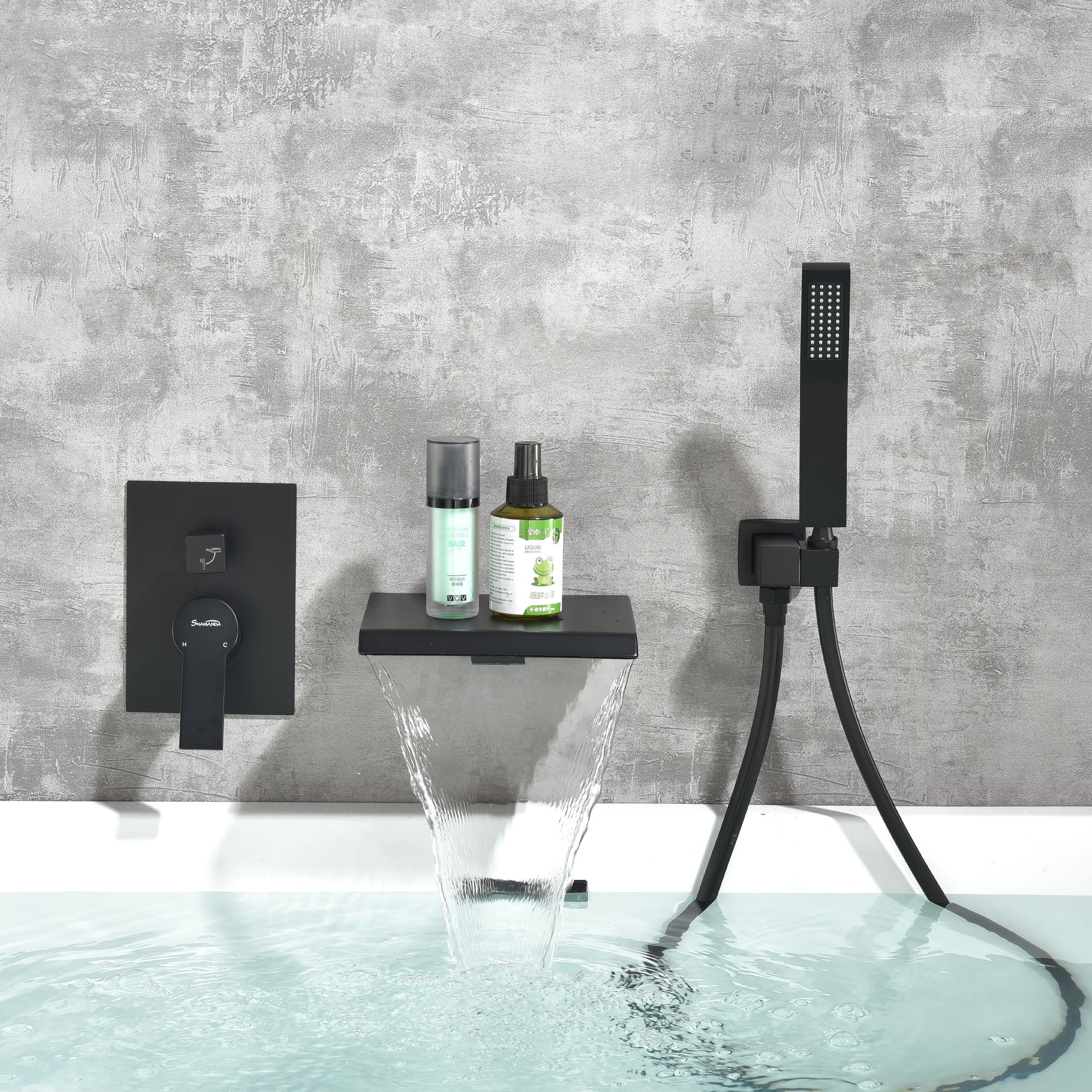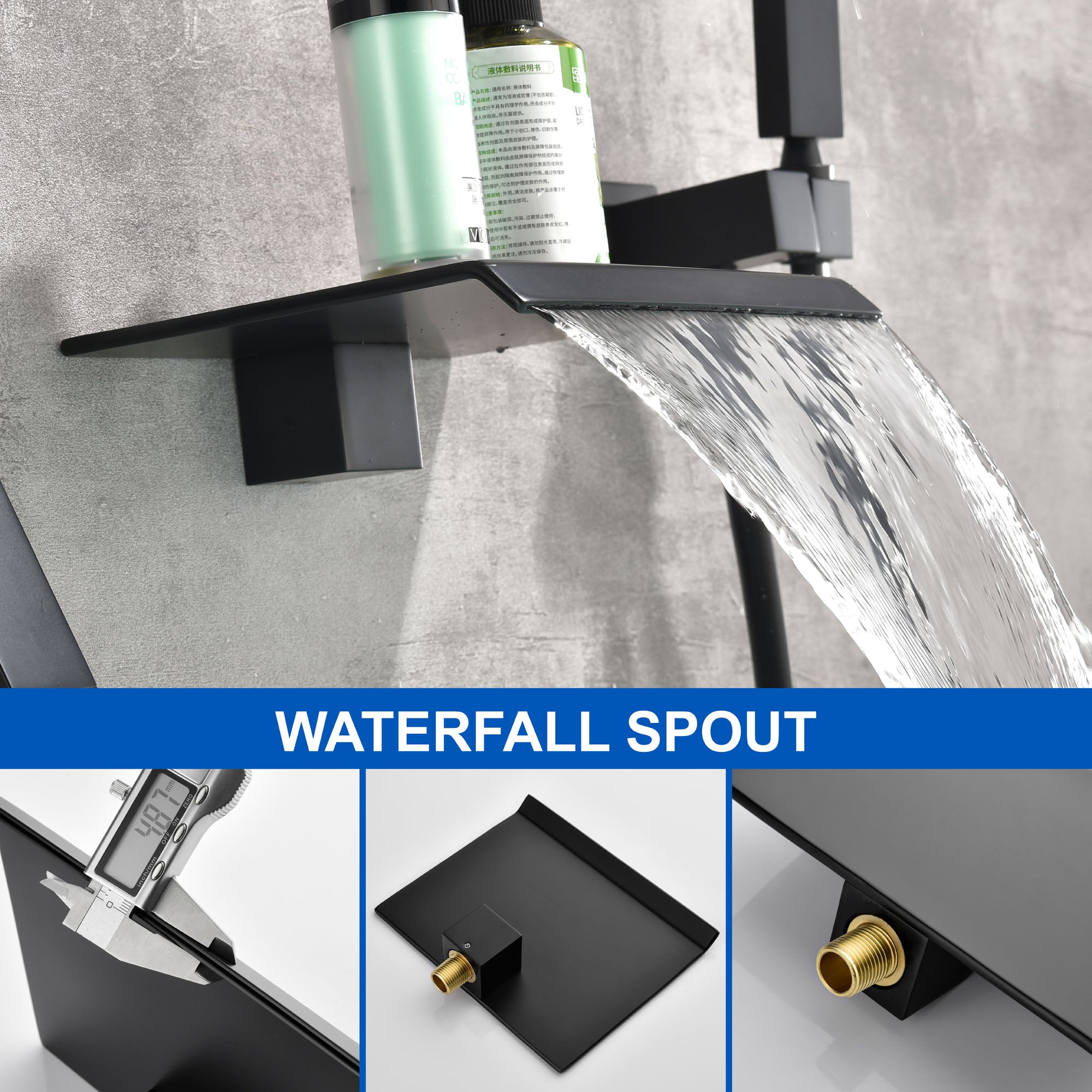 - You can switch hand shower or waterfall spout by rotating the square knob. The lever handle is easy to adjust temperature and water flow.The waterfall spout is firmly fixed to the wall and it can hold up shampoo or other shower supplies.Constructed with pressure balance valve to protect you from scalding when the hot or cold water pressure changes suddenly.