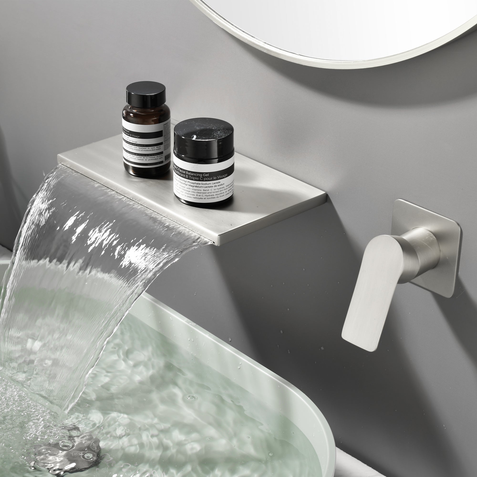 Waterfall Bathroom Faucet This bathroom sink faucet is designed with a waterfall spout, which gives you a wonderful view of the waterfall and a relaxing pleasant mood. It is quiet and no-splash. Single-Handle Lever Bathroom Faucet The smooth handling of a single lever makes it easier to regulate water flow...